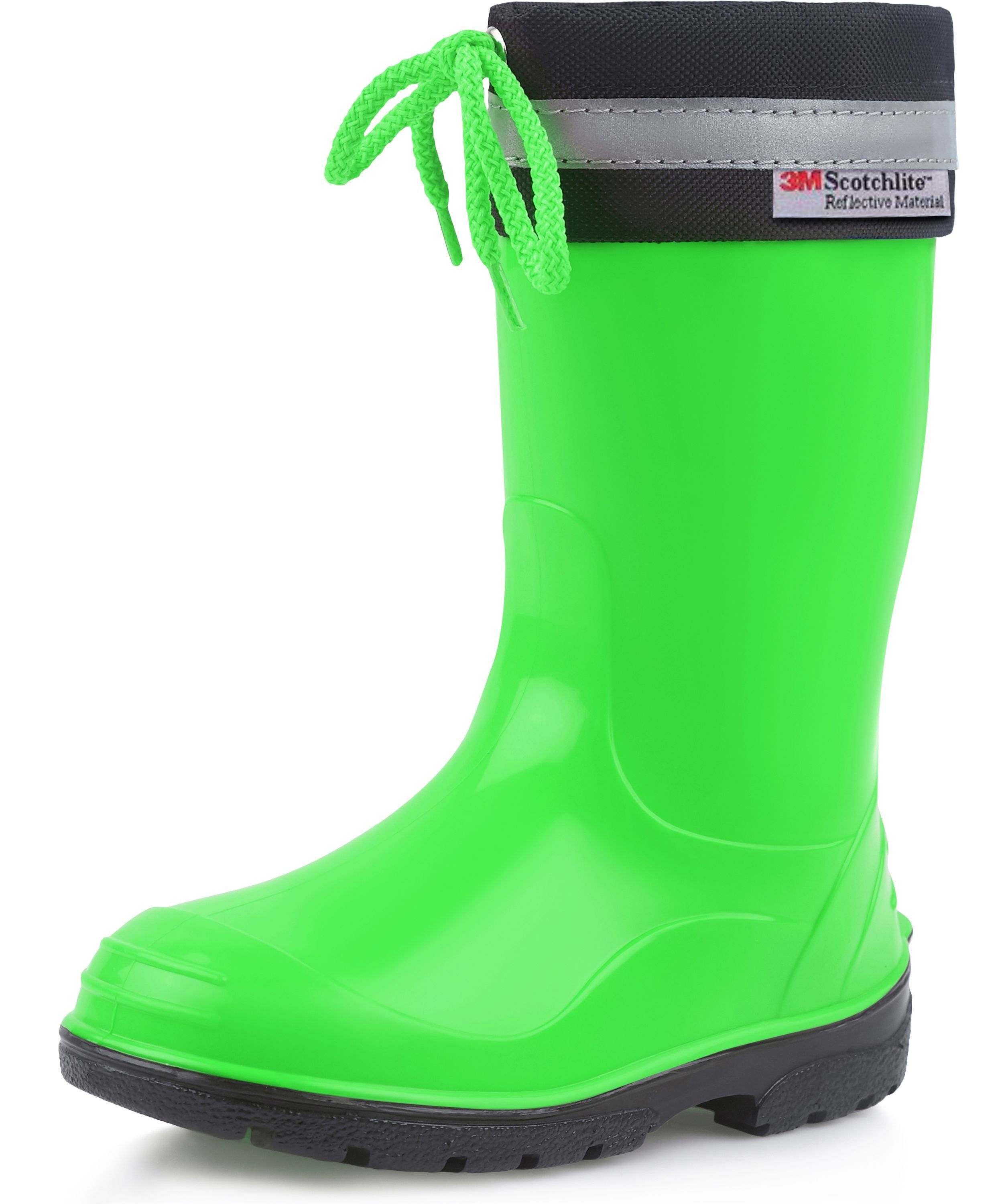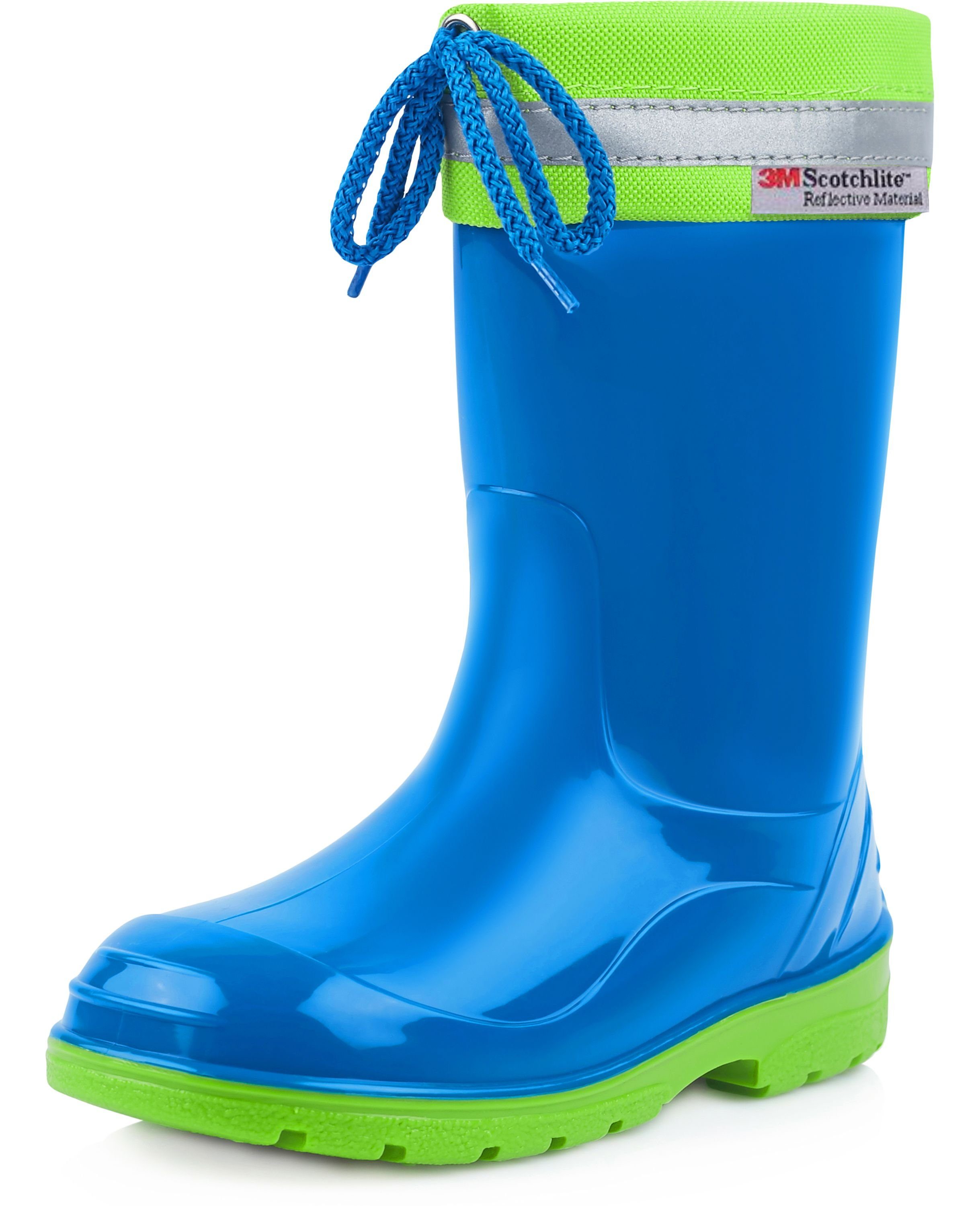 Komfortable und flexible Kinder Wellingtons mit Manschette aus Polyester und reflektierendem Band.