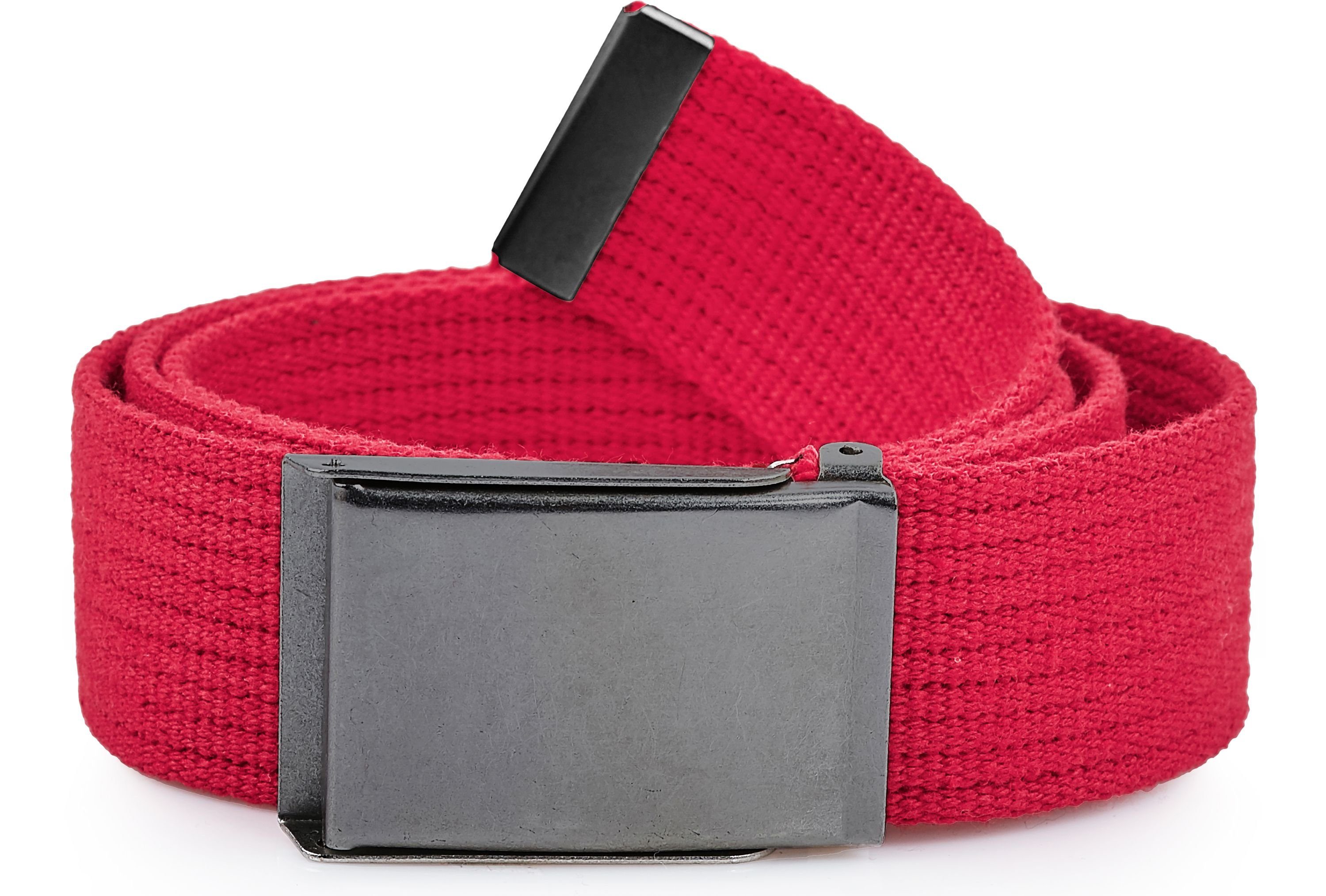 Materialgürtel für Herren mit voller Klammer. Hauptmaterial des Gürtels ist hochwertige Baumwolle in solidem, dickem Geflecht.
