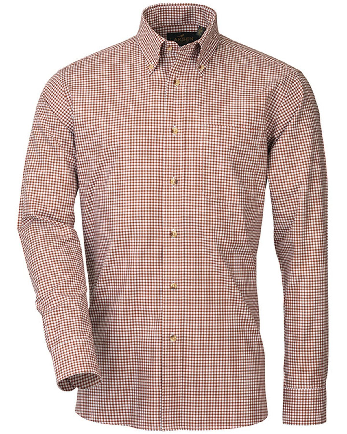 Das Herren Hemd Mortimer von Laksen bietet ein außergewöhnlich weiches und bequemes Tragegefühl dank seiner Herstellung aus 100% biologischer Baumwolle. Das Hemd präsentiert sich in einem eleganten, kleinen Tattersall-Karomuster in dunklem Orange, das dem Design eine stilvolle und klassische Note verleiht. Mit seinem Button-Down-Kragen und dem sportlichen Schnitt ist das Hemd perfekt für verschiedene Anlässe im British Country Style geeignet. Das Hemd Mortimer verfügt über eine praktische Brusttasche auf der linken Seite, die zusätzlichen Stauraum bietet und das Design harmonisch ergänzt. Es ist mit verstellbaren Manschetten ausgestattet, die mit Löchern für Manschettenknöpfe versehen sind, um eine individuelle Anpassung zu ermöglichen und dem Hemd einen Hauch von Eleganz zu verleihen. Dieses Hemd ist eine ideale Wahl für alle, die den klassischen britischen Landstil mit einem modernen Ansatz kombinieren möchten. Oberstoff: 100% Baumwolle