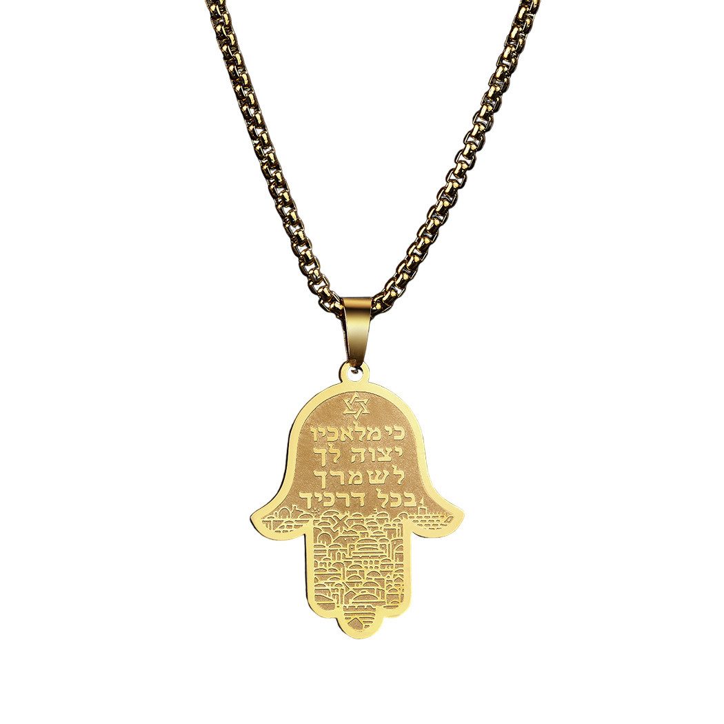 Diese jüdische Halskette ist ein Schmuckstück, welches die Hand von Fatima abbildet. Die Halskette besteht aus hochwertigem Edelstahl und ist in zwei verschiedenen Farben erhältlich: gold & silber. Dis Halskette ist sehr ästhetisch, hochwertig verarbeitet und kann ein sinnvolles und stilvolles Accessoire für diejenigen sein, die ihren Glauben und ihr kulturelles Erbe ausdrücken möchten. Es ist ebenfalls ein perfektes Geschenk für einen geliebten Menschen zu besonderen Anlässen wie Geburtstage, Feiertage oder als allgemeine Alltagsgeste. Sein schlankes und elegantes Design macht es zu einem vielseitigen Accessoire, das allein getragen oder mit anderen Schmuckstücken kombiniert werden kann. ▲ Material: Edelstahl ▲ 100% hypoallergen (sicher für empfindliche Haut) ▲ Halskette Длина: 55cm ▲ Anhänger Длина: 3,4 cm ▲ Anhänger Breite: 2,7 cm ▲ Paket Inhalt: 1 Anhänger + 1 Halskette