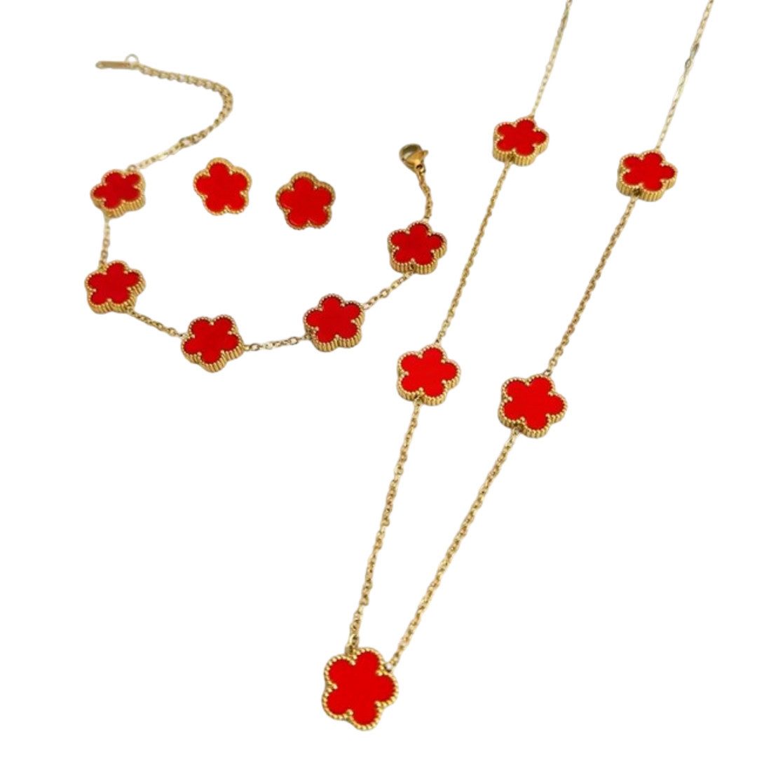 Design: Filigrane Kleeblätter/Blumen zieren sowohl das Armband als auch die Halskette, verleihen Ihrem Look eine zeitlose Note.
