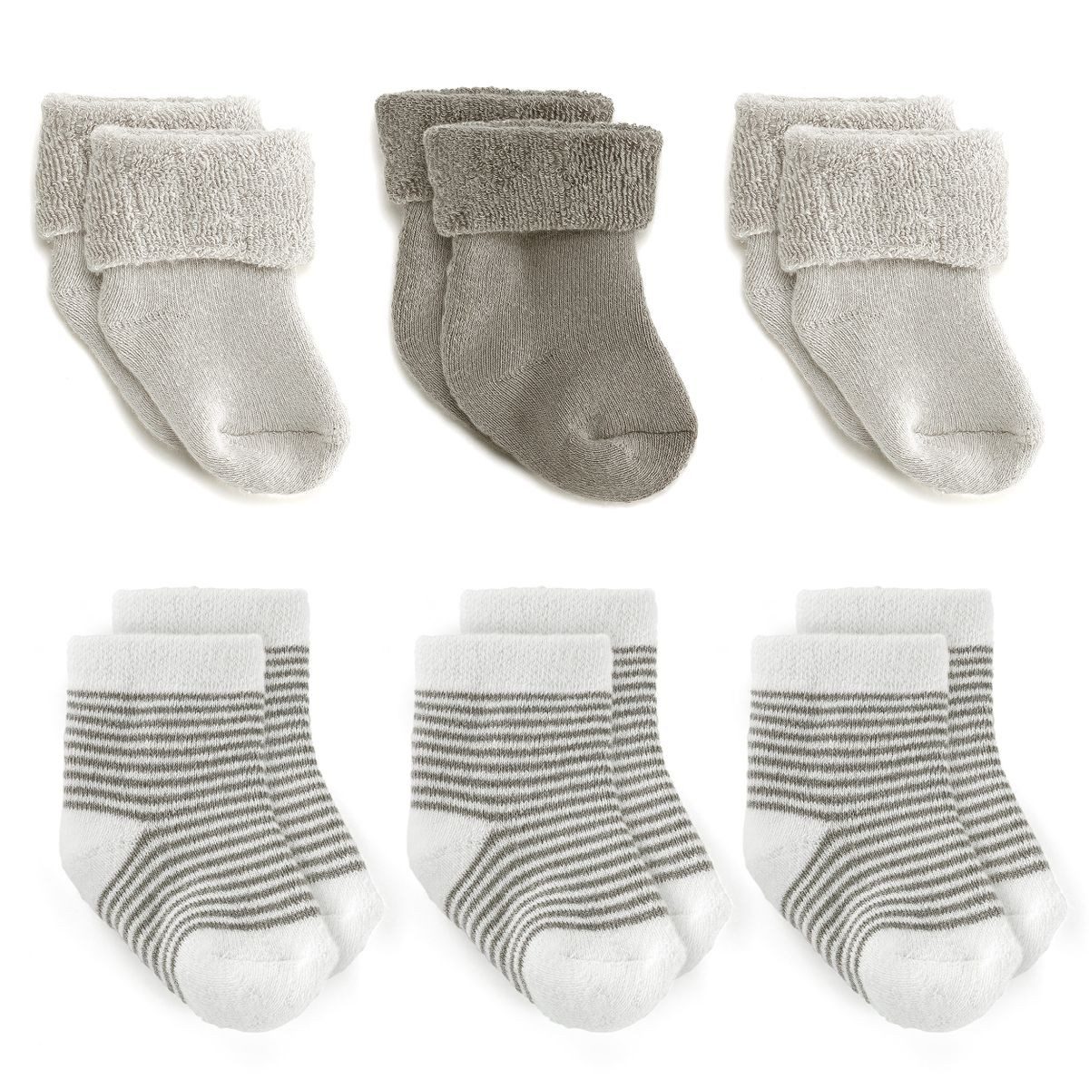 Um die zarten Babyfüßchen angenehm warm zu halten, sind kuschelige Babysöckchen genau das Richtige. Im LaLoona 6er Pack Baby Söckchen mit jeweils 3 Paar mit Umschlag und 3 Paar ohne Umschlag in neutralem Design haben es die kleinen Füße mollig warm. Das Material mit hohem Baumwoll-Anteil ist sehr anschmiegsam und weich zur zarten Kinderhaut. So fühlt sich Dein Nachwuchs ab dem ersten Tag rundum wohl.