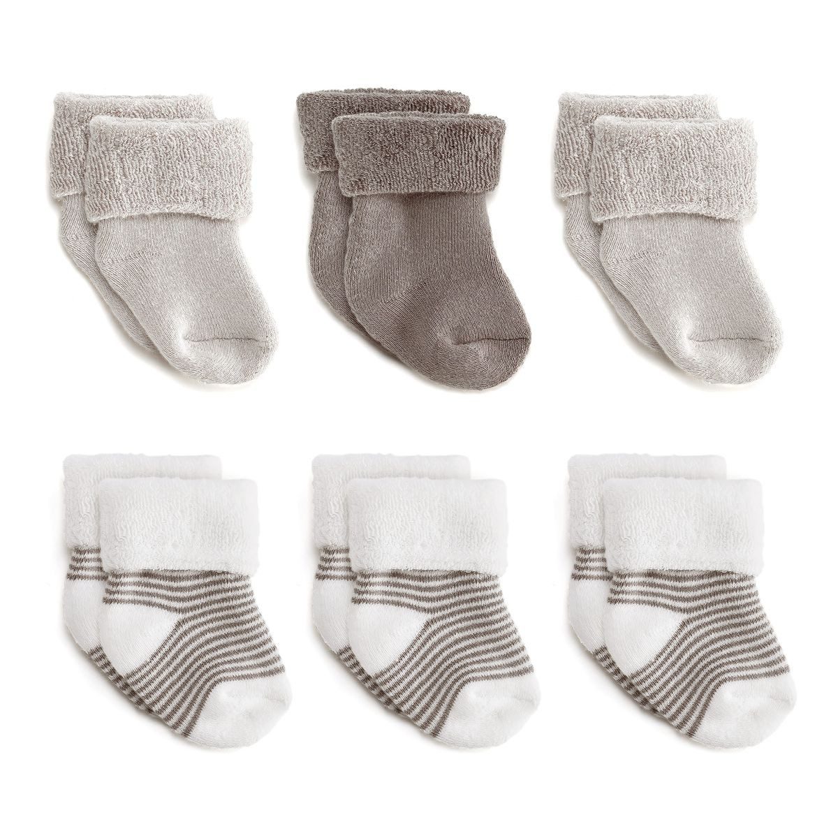 Um die zarten Babyfüßchen angenehm warm zu halten, sind kuschelige Babysöckchen genau das Richtige. Im LaLoona 6er Pack Baby Söckchen mit Umschlag in neutralem Design haben es die kleinen Füße mollig warm. Das Material mit hohem Baumwoll-Anteil ist sehr anschmiegsam und weich zur zarten Kinderhaut. So fühlt sich Dein Nachwuchs ab dem ersten Tag rundum wohl.