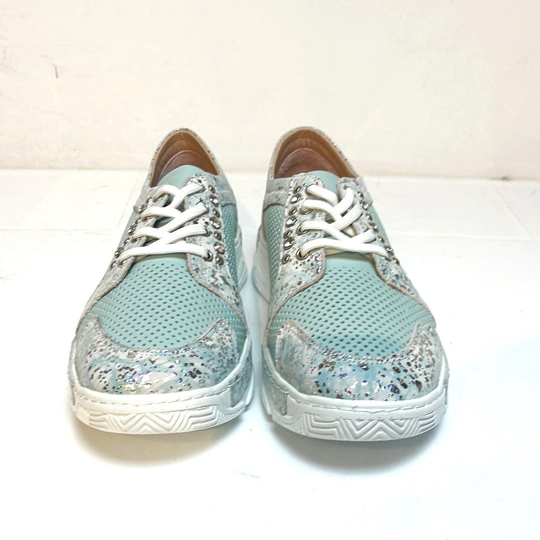 * * Elegantes Blau: Die Tosca Sneaker präsentieren sich in einem eleganten Blauton und verleihen Ihrem Look einen stilvollen und zugleich lässigen Charakter. * Vegan und Эко-товар: Mit einem zeitlosen Design aus veganen Materialien setzen diese Sneaker auf umweltfreundliche Produktion und stehen für modische Raffinesse. * Vielseitige Eleganz: Die Tosca Sneaker sind die perfekte Ergänzung für Frauen, die einen stylischen blauen Sneaker suchen, der sich vielseitig kombinieren lässt und gleichzeitig umweltbewusst ist. Innematerial: Kunstleder * Aussenmaterial: Leder Sohle * Höhe: 4 cm * Grundmaterial: Poliurethane