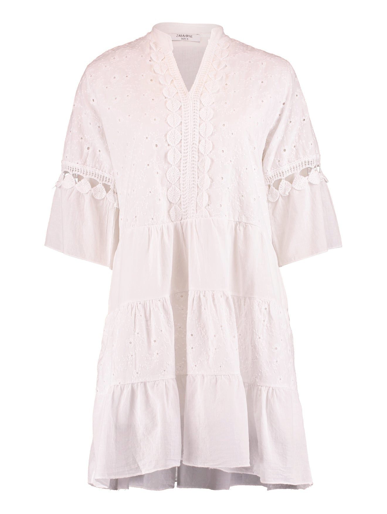 Diese weiße Baumwollbluse vereint Eleganz mit Komfort. Mit zarten Stickereidetails und einem stufigen Design sorgt sie für eine fließende, feminine Silhouette. Gefertigt aus atmungsaktiver und leichter Baumwolle bietet sie ganztägigen Tragekomfort bei gleichzeitig stilvollem Auftritt. Die kurzen Ärmel sind mit Spitzenelementen verziert und verleihen der Bluse eine besondere Note. Ideal für lässige Anlässe, Sommertage oder als vielseitiges Layering-Teil. Kombinieren Sie sie je nach Anlass elegant oder leger.
