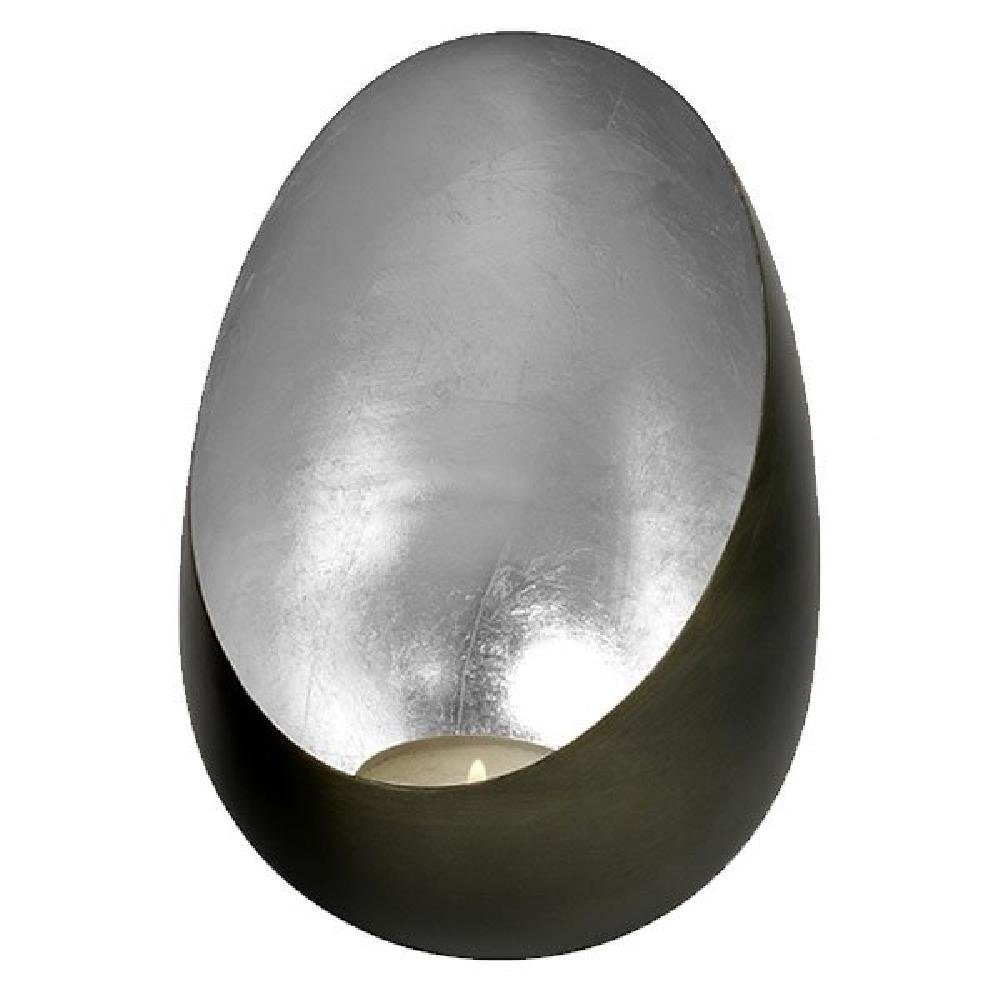 außen patiniert, innen mit Schlagmetall belegt (Silber)