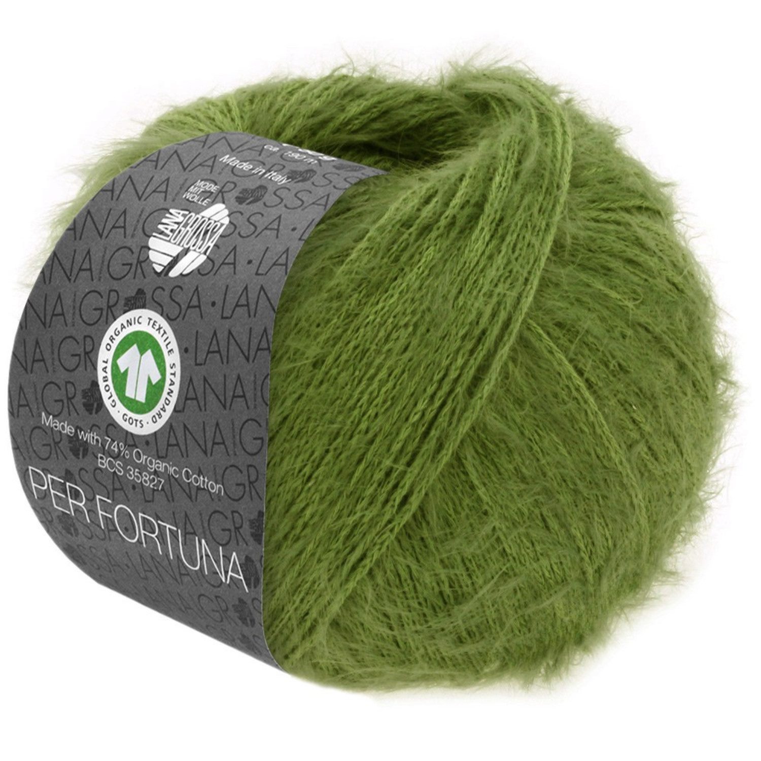 Erlebe mit der Lana Grossa PER FORTUNA ein Garn, das Dein Strickherz höher schlagen lässt. Dieses flauschige Kettengarn, bestehend aus 74 % Bio-Baumwolle und 26 % recyceltem Polyamid, ist nicht nur ein umweltfreundliches Produkt, sondern auch ein Garant für sommertauglichen Strickspaß. Mit seinem GOTS-Zertifikat garantiert dieses Garn höchste ökologische und soziale Standards – perfekt für alle, die Wert auf ein hohes Umweltbewusstsein legen.