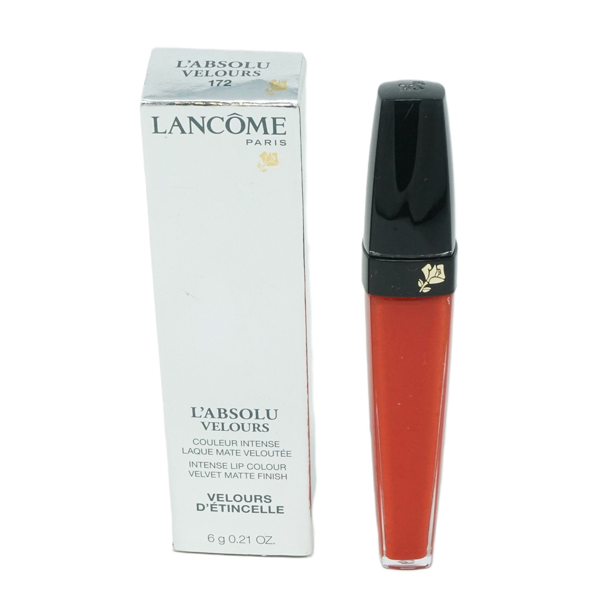 Lancôme L’Absolu Velours 172 Velours d’Étincelle verleiht den Lippen eine intensive Farbe mit satiniertem Finish Der leuchtende Korallton sorgt für frische Ausstrahlung und einen femininen Look Die cremige Textur fühlt sich angenehm weich an und trocknet die Lippen nicht aus