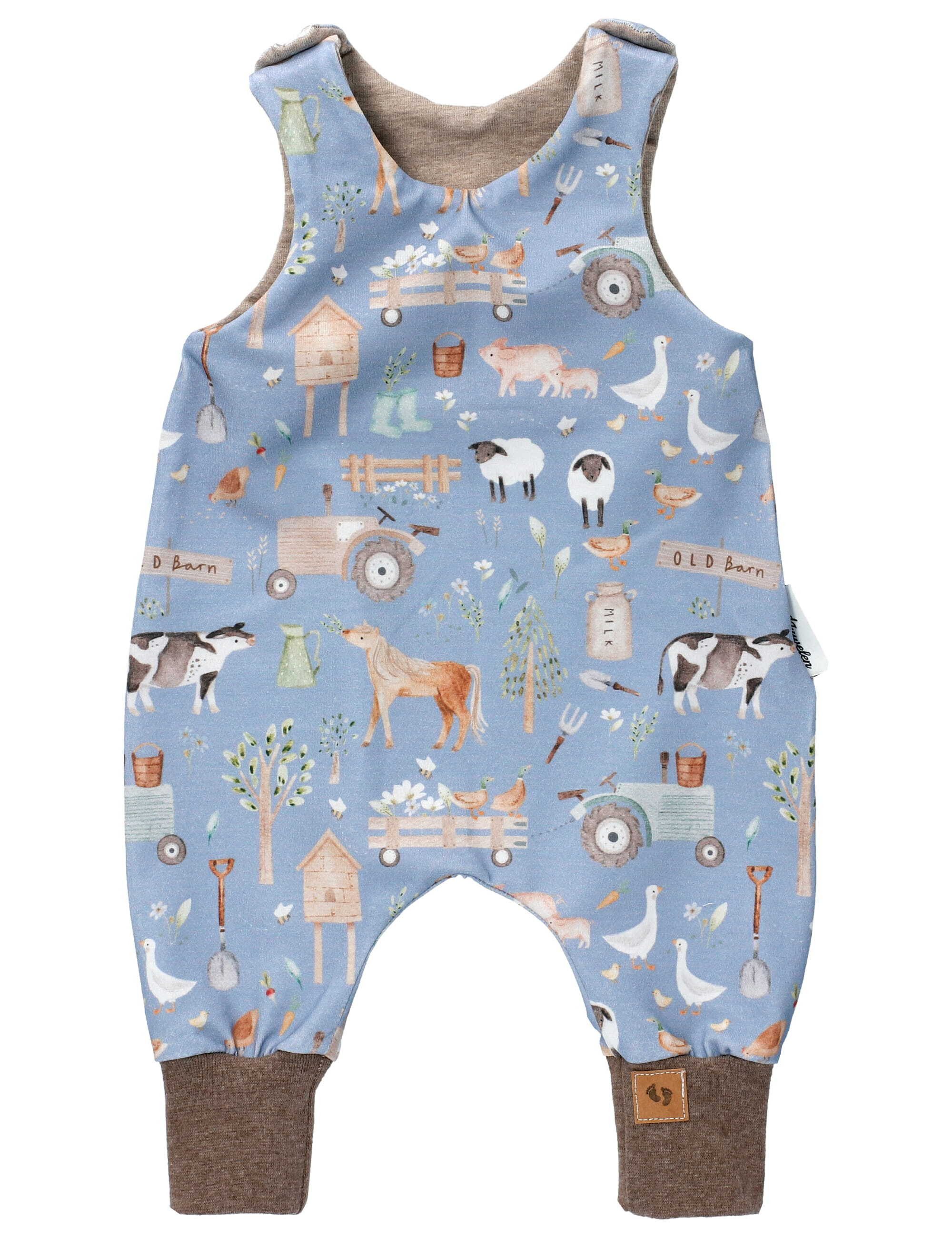 Ärmelloser Handmade-Strampler mit zauberhaften Bauernhof-Allover-Print