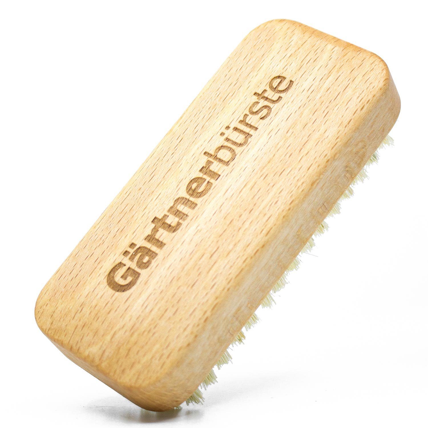 -Gärtnerbürste- Tradition aus dem Schwarzwald seit 1869 Die schafft alles..., unübertroffen nach Stall- und Gartenarbeit. Unsere Gärtner-Nagelbürste, auch als Handwaschbürste bekannt, hat reine, helle, kräftige Naturborsten. Gesamtlänge: 11 cm Breite: 4,5 cm Bürstengriff: heimisches Buchenholz geölt Borsten: helle kräftige Naturfibre (Pflanzenfaser); 7-reihig, Schnittlänge 9 mm Besonderheit: Griffmulde an den Seiten oben mit Aufdruck "Gärtnerbürste" Made in Germany dauerhaften Wasserkontakt vermeiden Aufbewahrung in der Nähe von Wärmequellen oder Heizgeräten vermeiden in Deutschland hergestellt Besonderheit Naturholz: Da Holz von außen nach innen trocknet, schrumpft das Splintholz um den noch feuchten Kernholzbereich und wird rissig. Auch das Kernholz trägt beim weiteren Trocknen Risse davon. ... Holz arbeitet, nimmt aus der Umgebungsluft Feuchtigkeit auf und gibt sie ab, was zur Volumenveränderung führt. Sollte Ihre Bürste nach einiger Zeit rissig werden, ist diese kein Grund für eine Reklamation, sondern ein ganz normaler und natürlicher Vorgang.