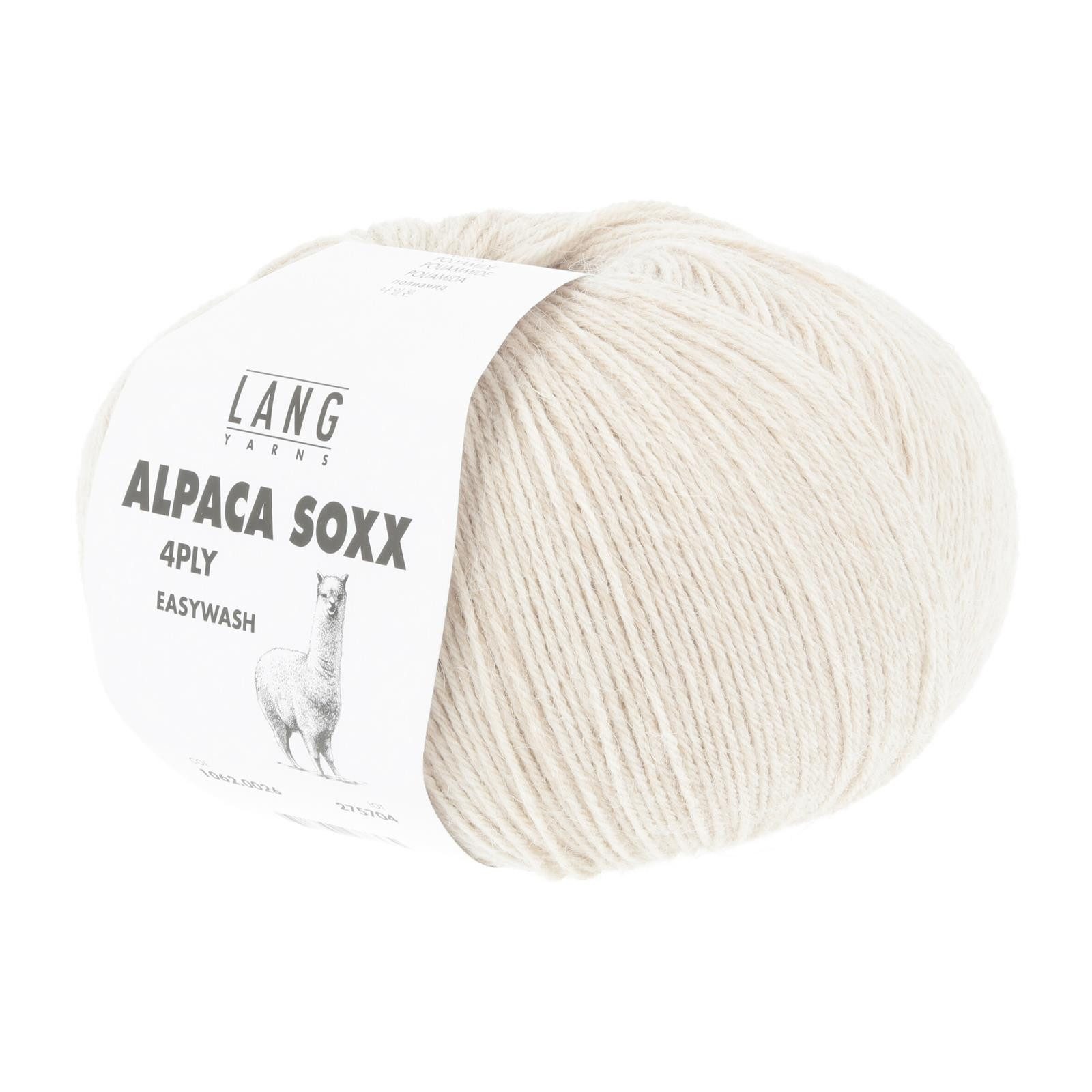 Alpaca Soxx 4-fach von LANG YARNS ist eine einfarbige 4 fädige Sockenwolle. Sie besteht aus 70% Alpaka (Superfine), 30% Polyamid Easywash. Das Garn zeichnet sich durch seine wärmeregulierenden und atmungsaktiven Eigenschaften aus und ist sehr weich. Die Fasern sind formstabil und halten das Projekt in Form. Auf er Haut trägt sich die Alpaca Soxx sehr angenehm und warm. Durch die glatte Oberfläche bilden sich weniger Knötchen.