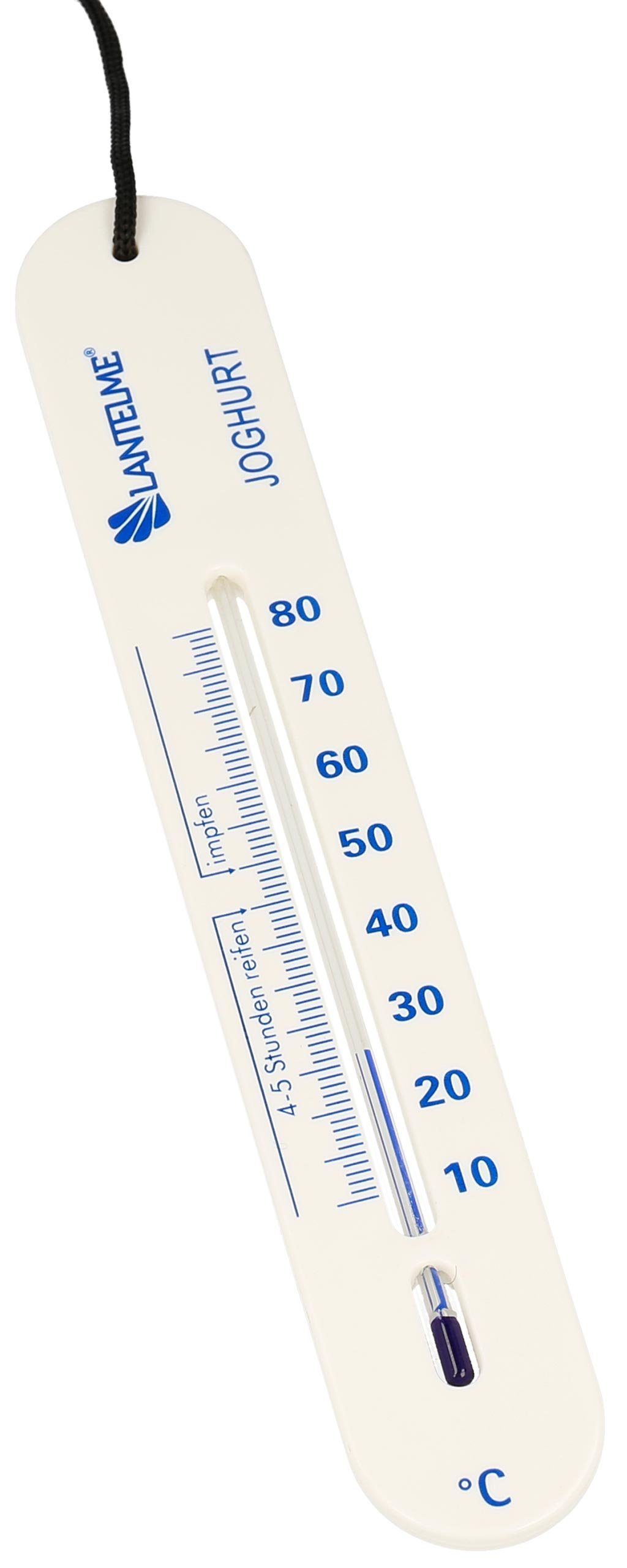 Das ideale Thermometer zur Herstellung von Jogurt und Michspießen. Durch das Eigengewicht des 20cm langen Thermometers, kann die Milch direkt in der Mitte oder am Boden gemessen werden. Die ideale Impftemperatur und Reifetemperatur sind am Thermometer optisch gekennzeichnet. Die Temperaturanzeige reicht von 10 bis 80 Grad Celsius. Hergestellt ist das Joghurtthermometer aus lebensmittelechtem Kunststoff und sinkt von selbst. Das Joghurtthermometer verfügt eine ca. 80cm lange Schnur zum Eintauchen.