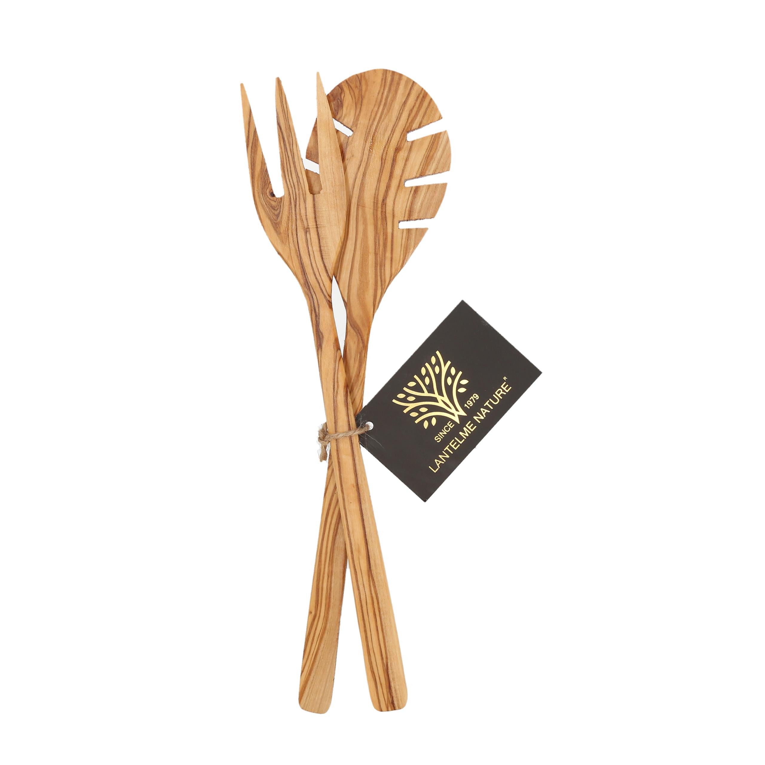 Das Salatbesteck mit Stil für jeden Koch. Das Lantelme Salatlöffel und Salatgabel Set bereichert Ihre Küche mit seinem edlen Design und ist aus stabilem, natürlichem Olivenholzholz hergestellt. Unser Servierbesteck ist langlebig. Die Gabel ca. 30 cm x 5 cm und der Löffel misst ca. 30 cm x 7 cm und das Set hat ein Gesamtgewicht von etwa 125g. Das große Salat Besteck eignet sich auch als Gemüsebesteck oder Servierlöffel. Unser Vorlegebesteck ist qualitativ hochwertig und wurde in liebevoller Handarbeit aus Naturschnitt herstellt. Passend für jeden Anlass mit schickem Retrolook. Für Garten, Küche oder Grill Party. Das Holzbesteck ist Ihr Küchenhelfer schlechthin und hervorragend für hohe Schüsseln. Servieren Sie mit unserem Besteck Salat, Nudeln und mehr. Das Holz hinterlässt keine Kratzer auf Töpfen oder Teflonpfannen. Das Holzsalatbesteck ist Spülmaschinengeeignet. Das Salatgarnitur Set ist schnell und einfach zu reinigen. Bei unserem Salatlöffel, Salatgabel und Pfannenwender stammt aus der Ägäis und es handelt sich bei jedem Stück um ein Unikat. Hervorragend als Geschenk geeignet, dank der Einzigartigkeit in Form und Maserung. Verschenken Sie dieses elegante Unikat an Ihre Liebsten. Ideal für Weihnachten, Vatertag, Muttertag oder Geburtstag. Leisten Sie Ihren Beitrag für den Umweltschutz! Das Oliven Holz des langen Olivenholzsalatbesteck Sets ist stabil und wird ausschließlich von nicht mehr tragenden Olivenbäumen gewonnen.