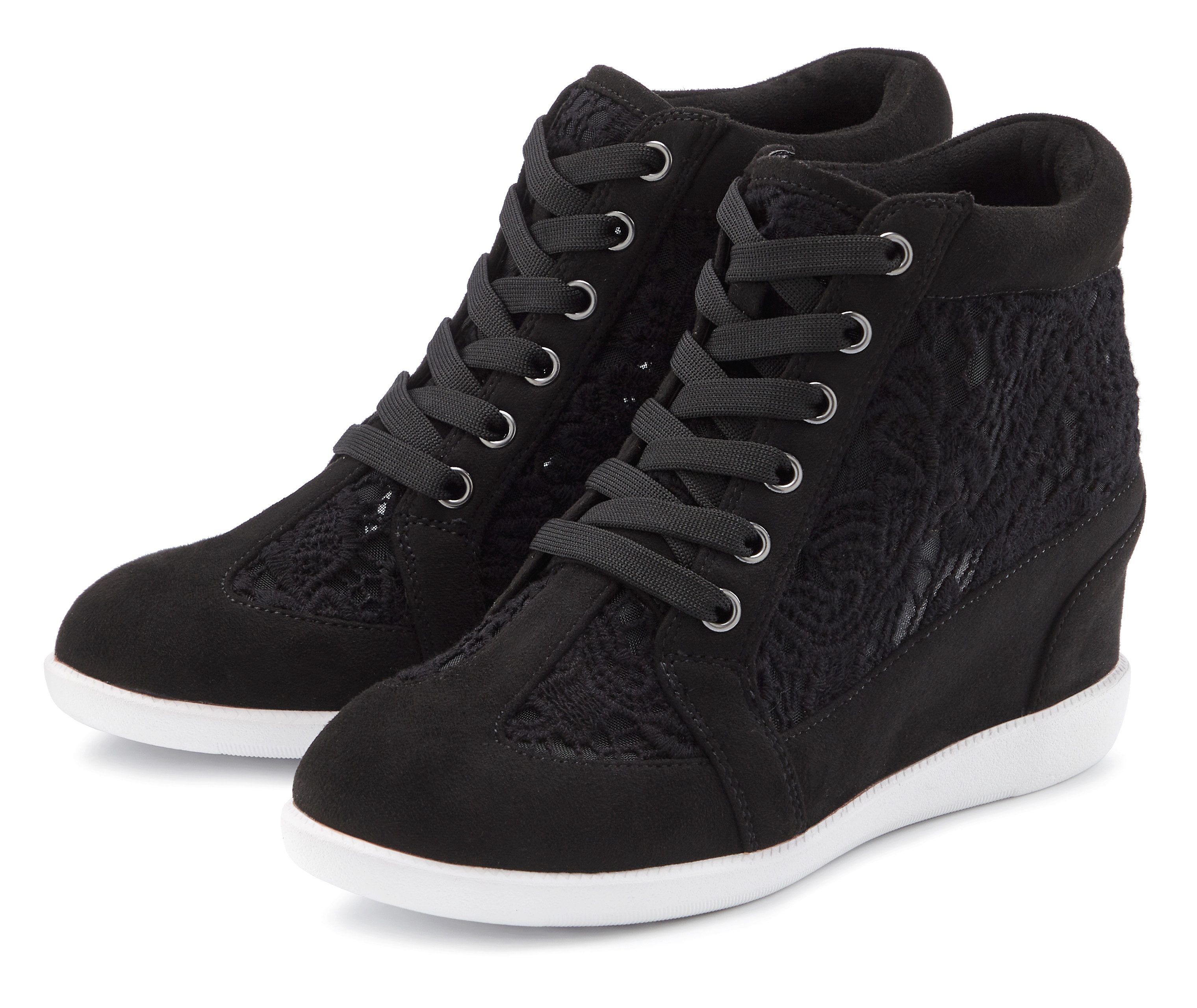 Besondere Merkmale | mit innenliegendem Keilabsatz und Spitzendetails |