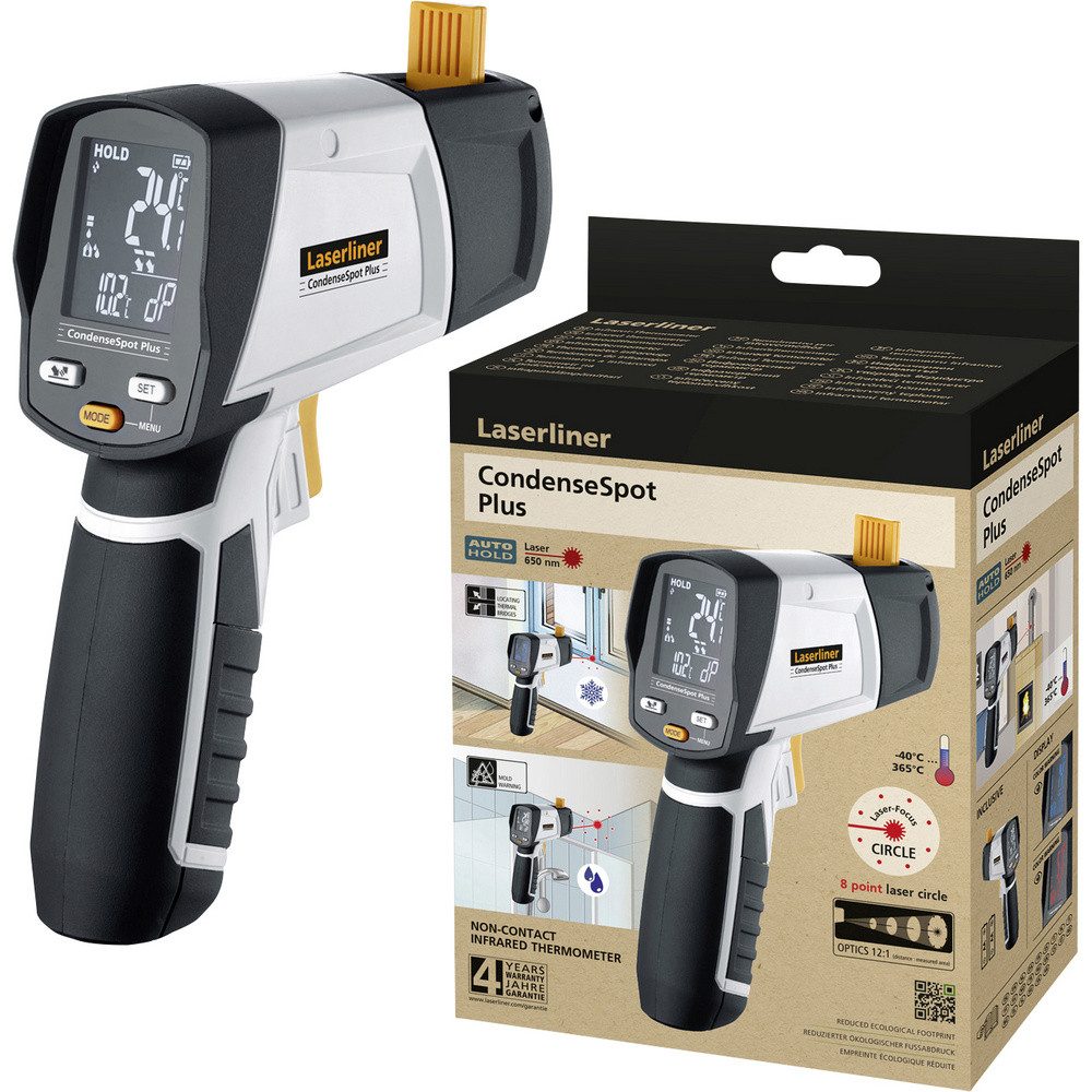 Dieses Infrarotthermometer eignet sich zur Vorbeugung von Schäden an der Gebäudesubstanz durch die Lokalisierung von Wärmebrücken und Kondensationsfeuchte. Das Gerät ermittelt die Oberflächentemperatur, die Umgebungstemperatur, die relative Luftfeuchtigkeit und die Taupunkttemperatur. Auch Temperaturmessungen an schlecht zugänglichen Stellen oder gefährdeten Messzonen sind möglich. Auf dem praktischen Multifunktionsdisplay werden unterschiedliche Messwerte simultan angezeigt. Das Gehäuse besteht zu einem Großteil aus recyceltem Material und leistet einen wertvollen Beitrag zur Эко-товары