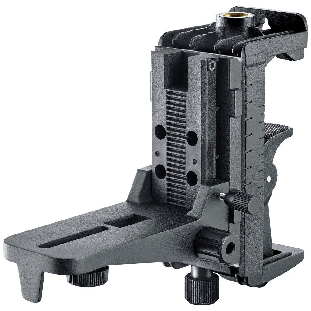 Die robuste, magnetische Klemm- und Wandhalterung ist für sämtliche Lasermessgeräte mit 1/4" Gewinde geeignet. Sie verfügt über Ösen zur direkten Befestigung an Wänden. Starke Haftmagnete an der Rückseite ermöglichen die Fixierung an metallischen Oberflächen. Per Klemmhalterung erfolgt die horizontale und vertikale Anbringung an Trockenbauprofilen. Durch das Justieren der Verstellschraube lässt sich die Öffnungsweite der Klemmhalterung steuern