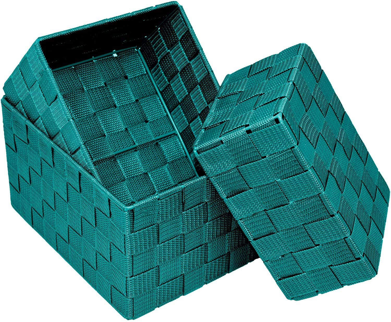 Ob im Badezimmer, als Spielzeugkorb im Kinderzimmer oder zur Aufbewahrung von Kosmetik, unsere praktischen Regalkörbe sind einfach unverzichtbar! Verstauen Sie in den Badkörbchen all Ihre Utensilien wie Bürsten, Seifen und Shampoos oder bringen Sie in den leeren Aufbewahrungsboxen Küchen Zubehör und Büro Material unter, alles ist in den rechteckigen Regalboxen bequem beherbergt. Der kleinste Badkorb ist ca. 19x14x10 cm groß, die mittlere Schrankbox misst ca. 21x16x12 cm und der größte Aufbewahrungskorb hat die Maße von ca. 24x18x14 cm. So lassen sich unsere komfortablen Dekokörbe im 3er Pack perfekt stapeln und bequem in Ihre Schränke verstauen.