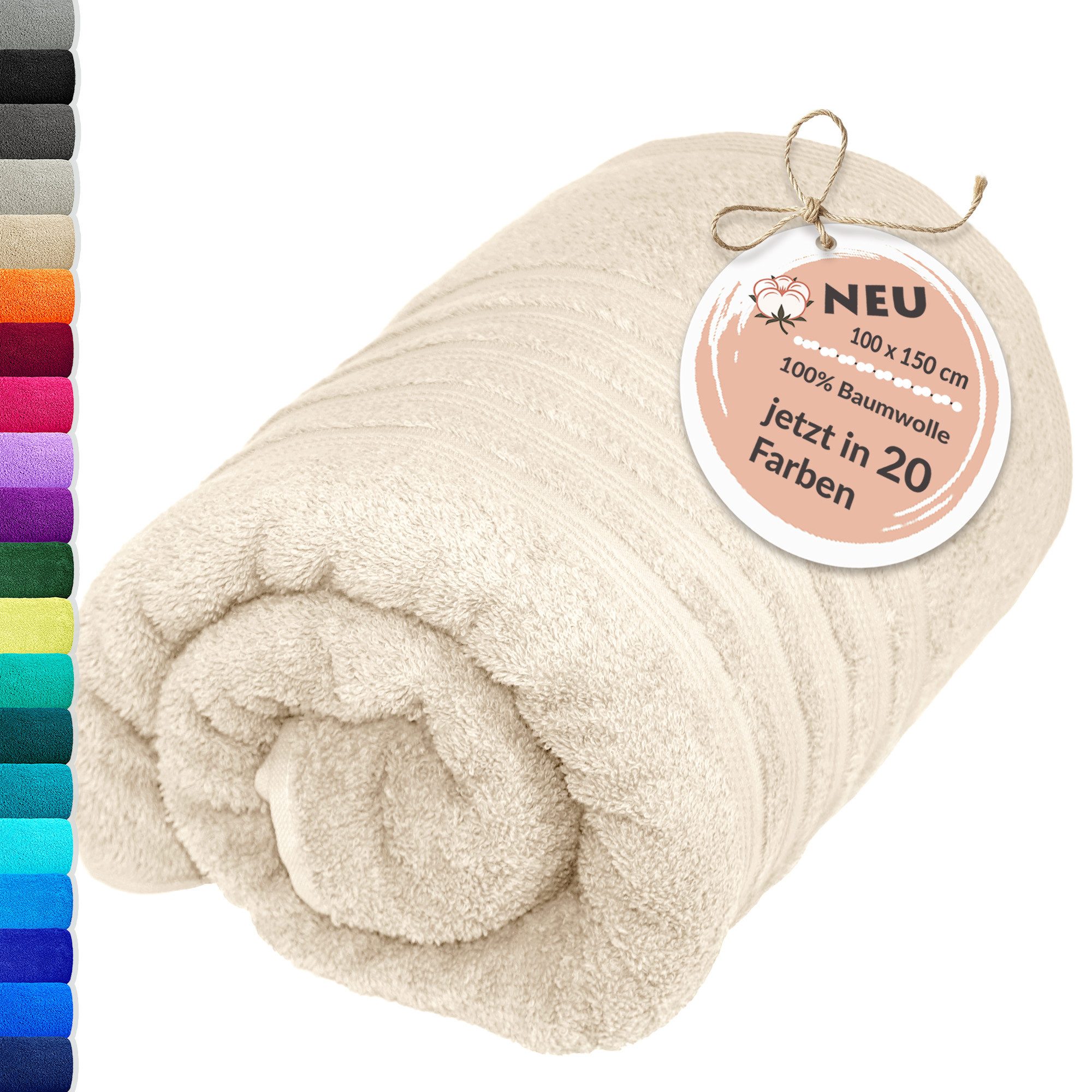Genießen Sie pure Entspannung mit unserem großen Badehandtuch in ca. 100x150 cm. Das dichte, weiche Frottee (ca. 500 g/m²) aus 100% Baumwolle ist besonders saugstark, hautfreundlich und langlebig – ideal als Strandtuch, XXL Duschtuch, Saunatuch oder Wellness-Handtuch für Damen und Herren.
