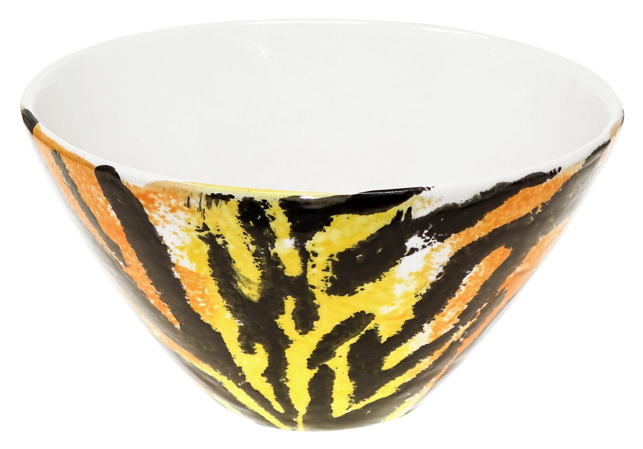 Diese runde Servierschale darfs in indischer Tiger Optik sein! Lecker Müsli, Salat oder Obst lassen sich mit unserer tiefen Keramikschüssel doppelt schmecken.