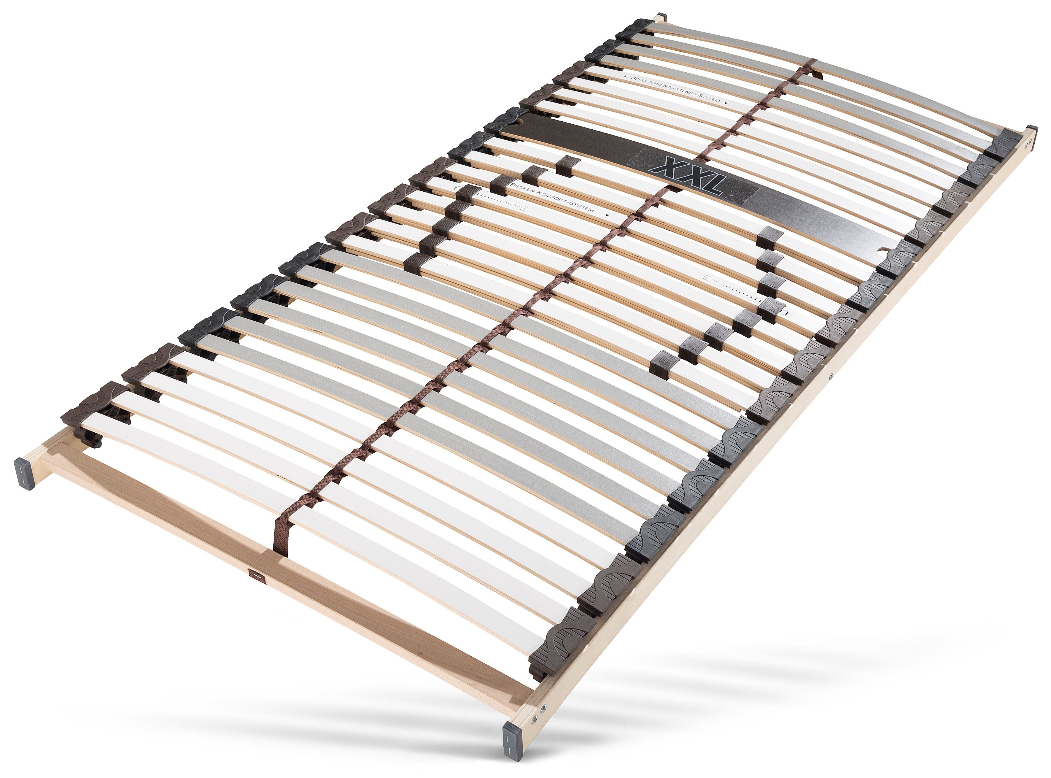 Besondere Hinweise | Für die Kompatibilität mit handelsüblichen Bettgestellen werden Lattenroste knapp unterhalb der gängigen Bettenmaße gefertigt. Die Lattenroste werden entsprechend der Norm DIN EN 1725:1998-2 gefertigt. Beispiel: Bettenmaß ca. 90x200 cm = Rahmenmaß ca. 89x196 cm. |
