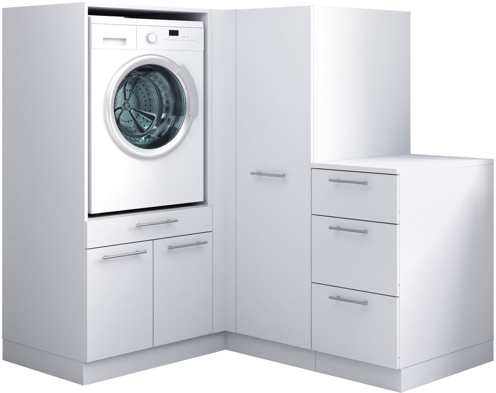 Set beinhaltet | 1x Waschmaschinenschrank,1x Eckschrank, 1x Unterschrank |