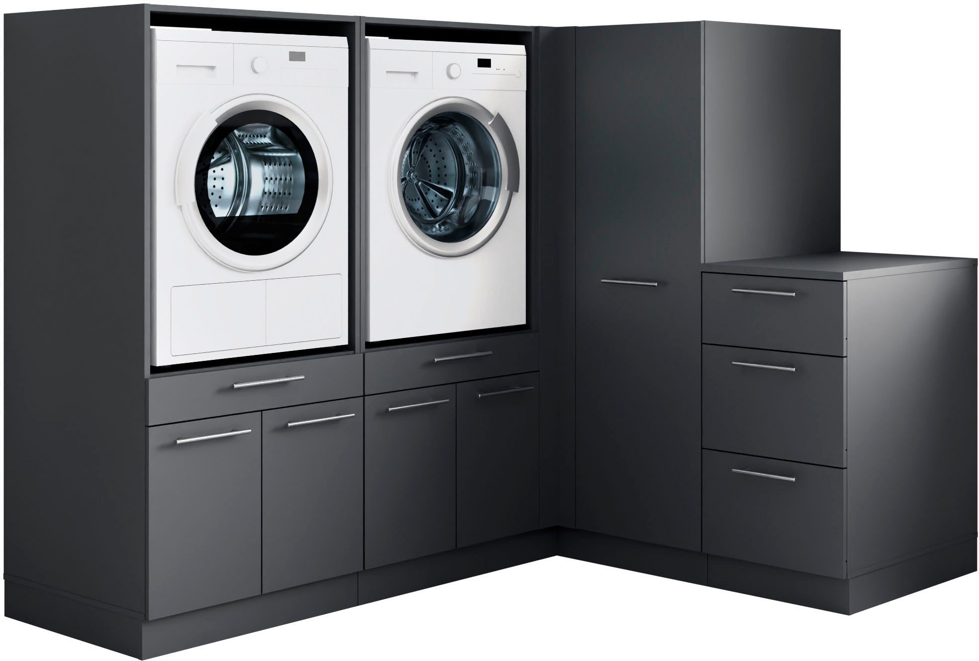 Set beinhaltet | 2x Waschmaschinenschränke, 1x Eckschrank, 1 Unterschrank |