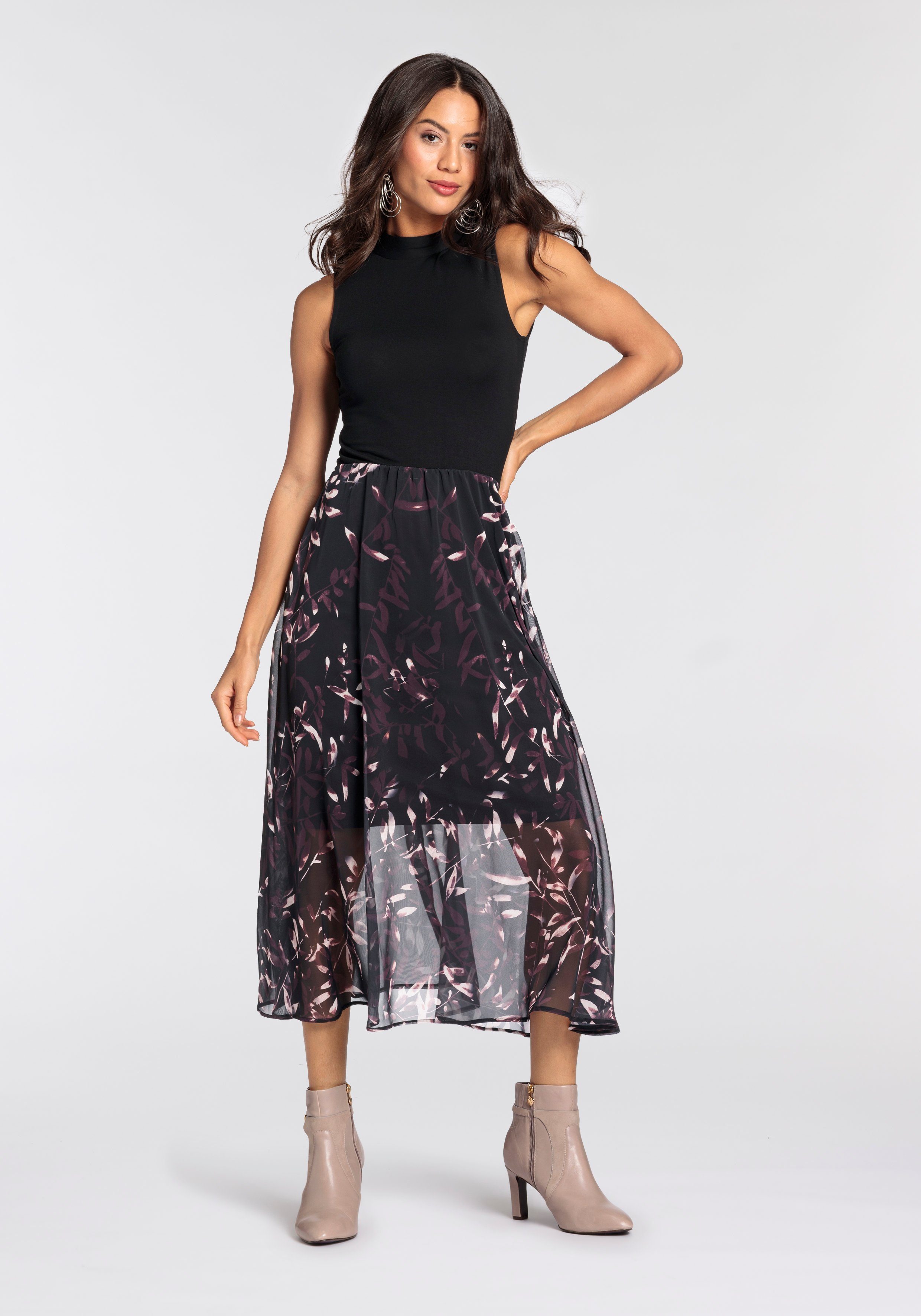 Mit dem wadenlangen Abendkleid von Laura Scott bist du zu feierlichen Anlässen feminin angezogen. Der ausgestellte Schnitt betont deine Taille. Der Stehkragen bringt sportliche Eleganz ins Outfit.
