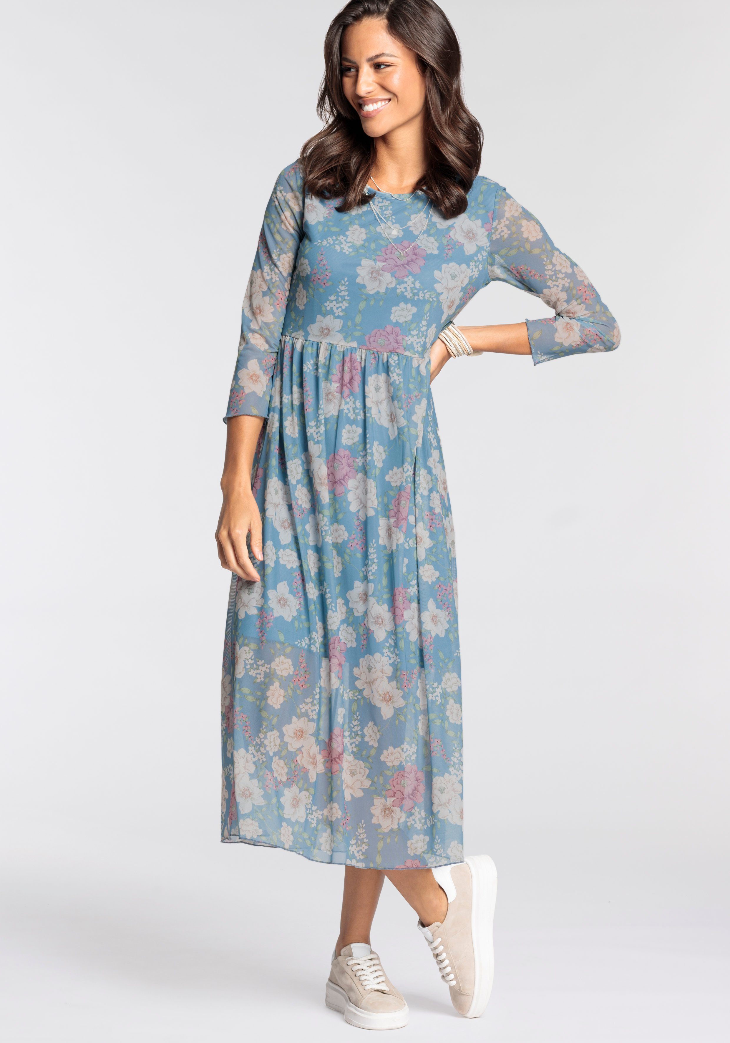 Mit dem wadenlangen Meshkleid von Laura Scott bist du feminin unterwegs. Der ausgestellte Schnitt betont deine Taille.