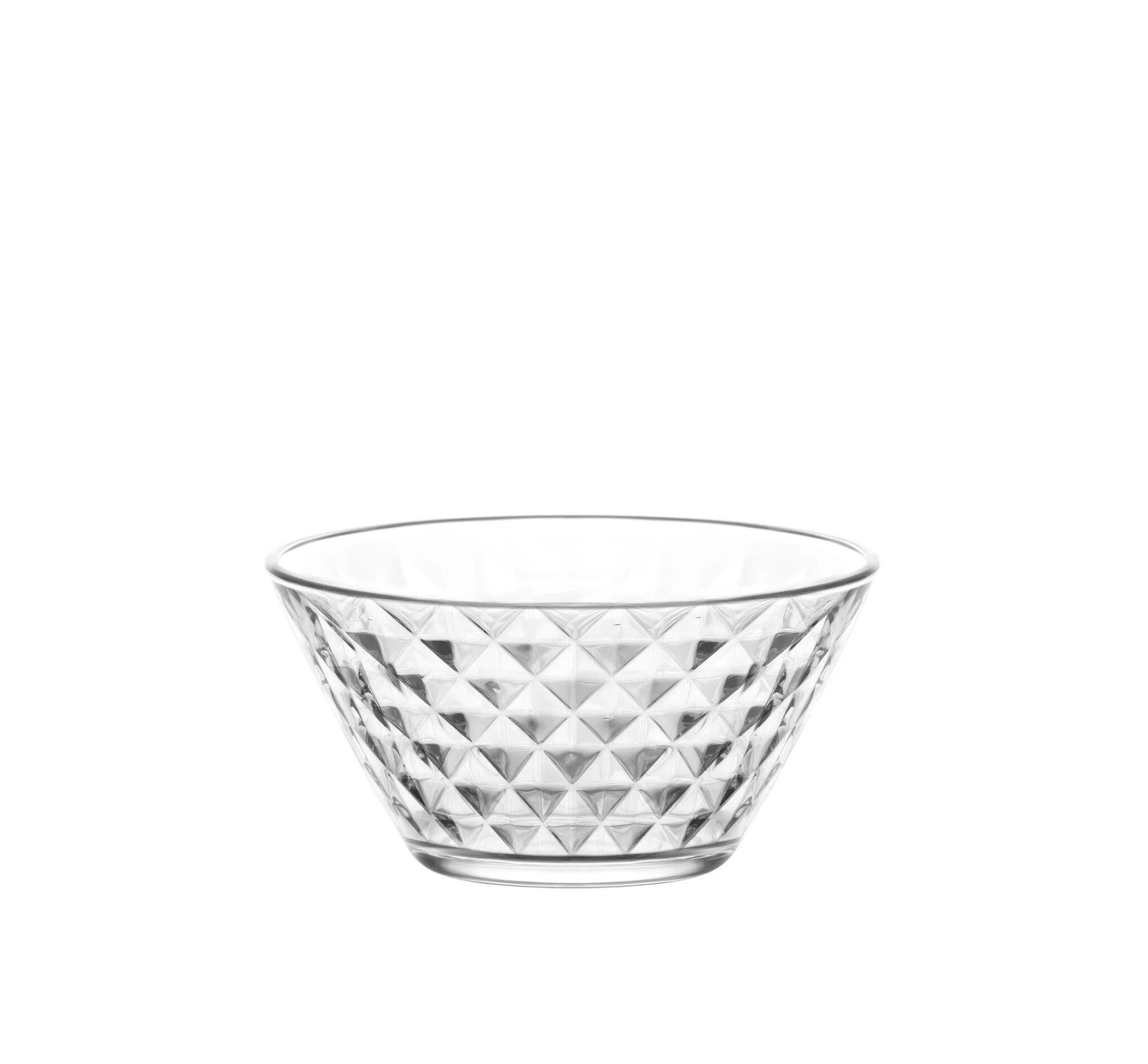 Das strukturierte, geometrische Muster verleiht jeder Schale eine edle Optik mit einzigartigem Lichtspiel. Die glasklare Transparenz hebt den Inhalt stilvoll hervor – ideal für moderne Tischarrangements oder die ansprechende Präsentation kleiner Speisen. Mit einem Fassungsvermögen von 330 ml und einem Durchmesser von 12 cm bieten sie die perfekte Размер für Joghurt, Salate, Desserts, Snacks oder Dips.