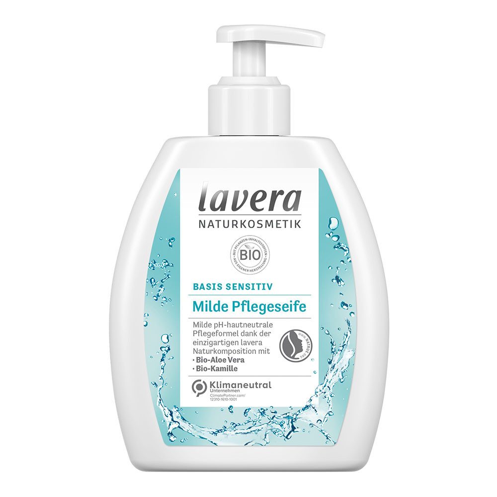 Entdecken Sie das lavera Geheimnis natürlich milder Pflegeseife: Unsere sorgfältig ausbalancierte Naturkomposition mit Bio-Aloe Vera und Bio-Kamille bietet Ihren Händen eine verträgliche, milde Reinigung, ohne sie auszutrocknen. Die pH-hautneutrale Formel mit zartem Pflegeschaum verleiht den Händen beim Waschen ein gepflegtes Hautgefühl.