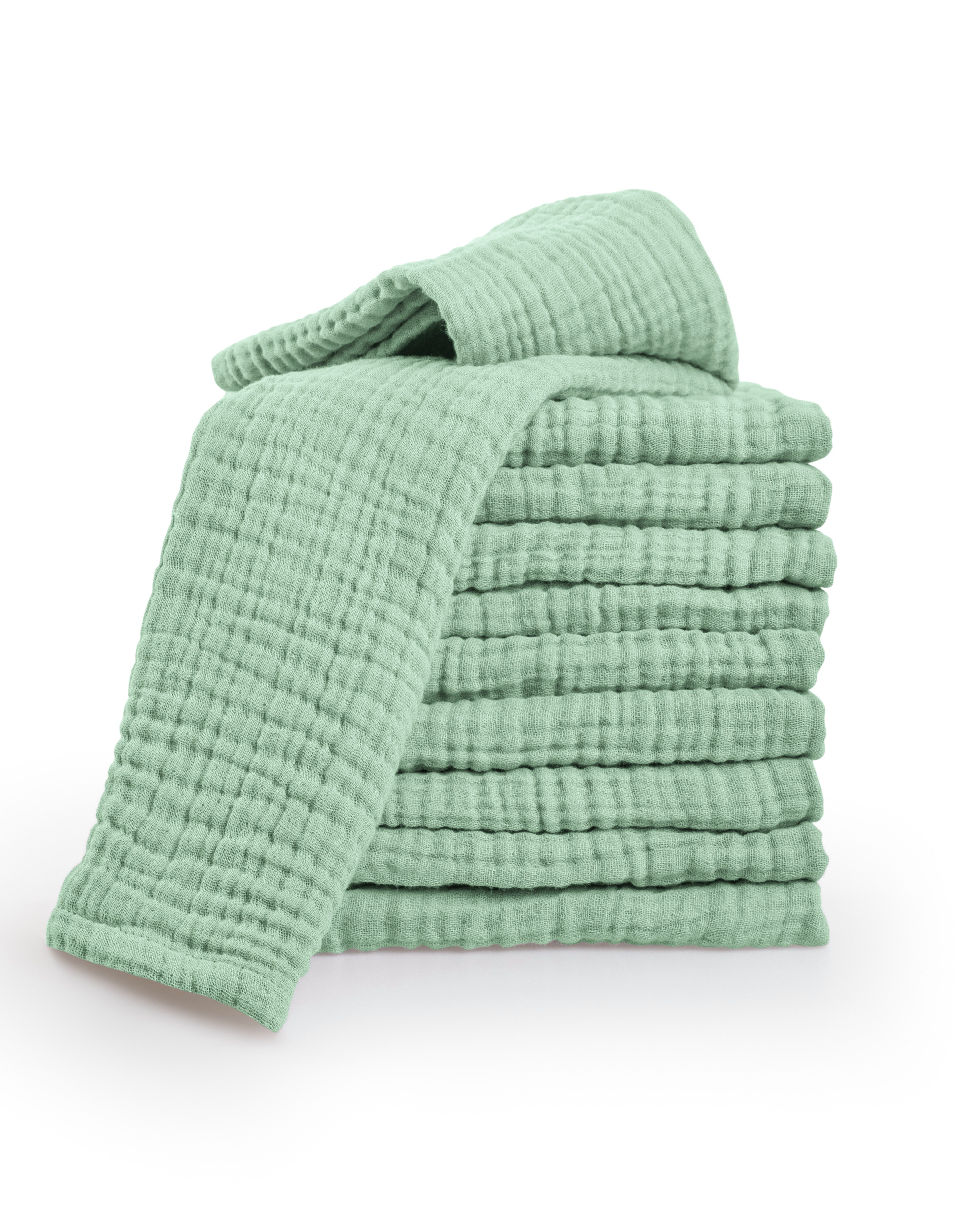 REINIGUNG & PFLEGE: Die Mulltücher sind maschinenwaschbar bei 60 °C und trocknergeeignet – hygienisch und pflegeleicht für den täglichen Einsatz.