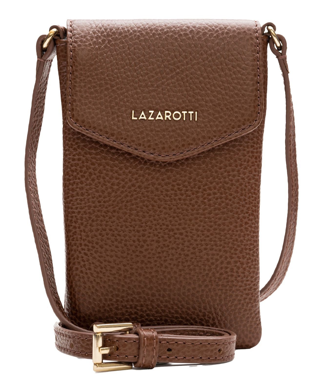 Mit der Lazarotti Bologna Leather Mobile Pouch Handytasche im eleganten Design haben Sie einen tollen Alltagsbegleiter gefunden. Mit der Lazarotti Handytasche sind Sie nicht nur modisch, sondern haben endlich eine umlegbare Aufbewahrung für Ihr Smartphone gefunden, mit der Sie dieses immer bei sich tragen und trotzdem die Hände freihaben. Platz für bis zu drei Karten gibt es auch. Darüber hinaus kann der Schultergurt individuell verstellt werden.