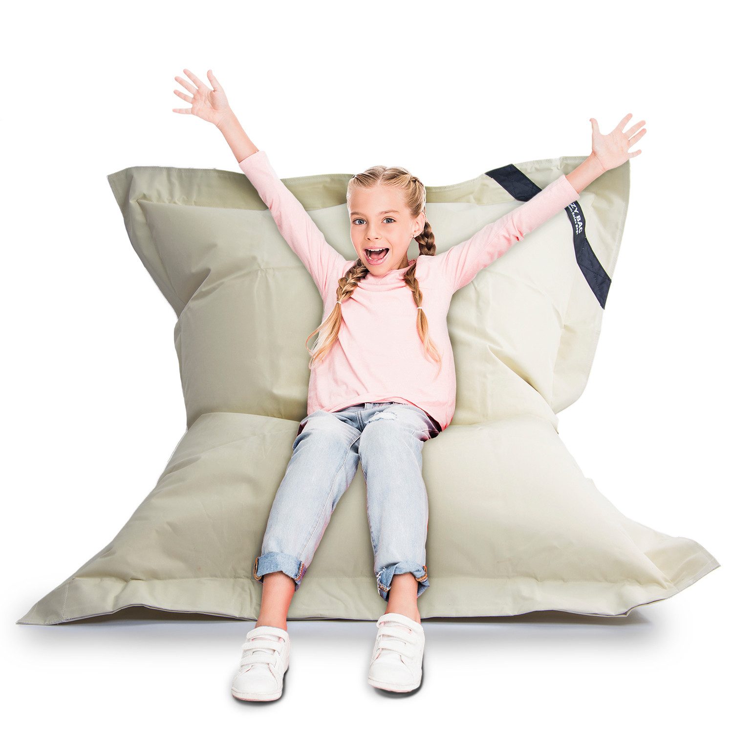 Hergestellt wie die großen aus 100% wasserfester, lichtbeständiger Nylon-Faser ist dieser Outdoor Sitzsack für Drinnen und Draußen das Möbel der Wahl. Immer bequem, immer die richtige Passform stützt er bei jeder Haltung. Er isoliert vom kalten Boden und ist so robust, dass auch darauf Rum- und Reinspringen keine Sorgen bereitet. Die komplette Sitzsackfüllung ist aus EPS Perlen der höchsten Qualitätsstufe mit hohem Volumengewicht (viel Material pro Volumen), dass zu einer wesentlich höheren Elastizität führt. Das alles aber mit etwas kompakteren Abmessungen als der ganz große Bruder von ca. 160 x 125 cm und ca. 250 Liter Füllung. Jetzt endlich den Sitzsack Traum erfüllen und dabei Platz und Geld sparen!