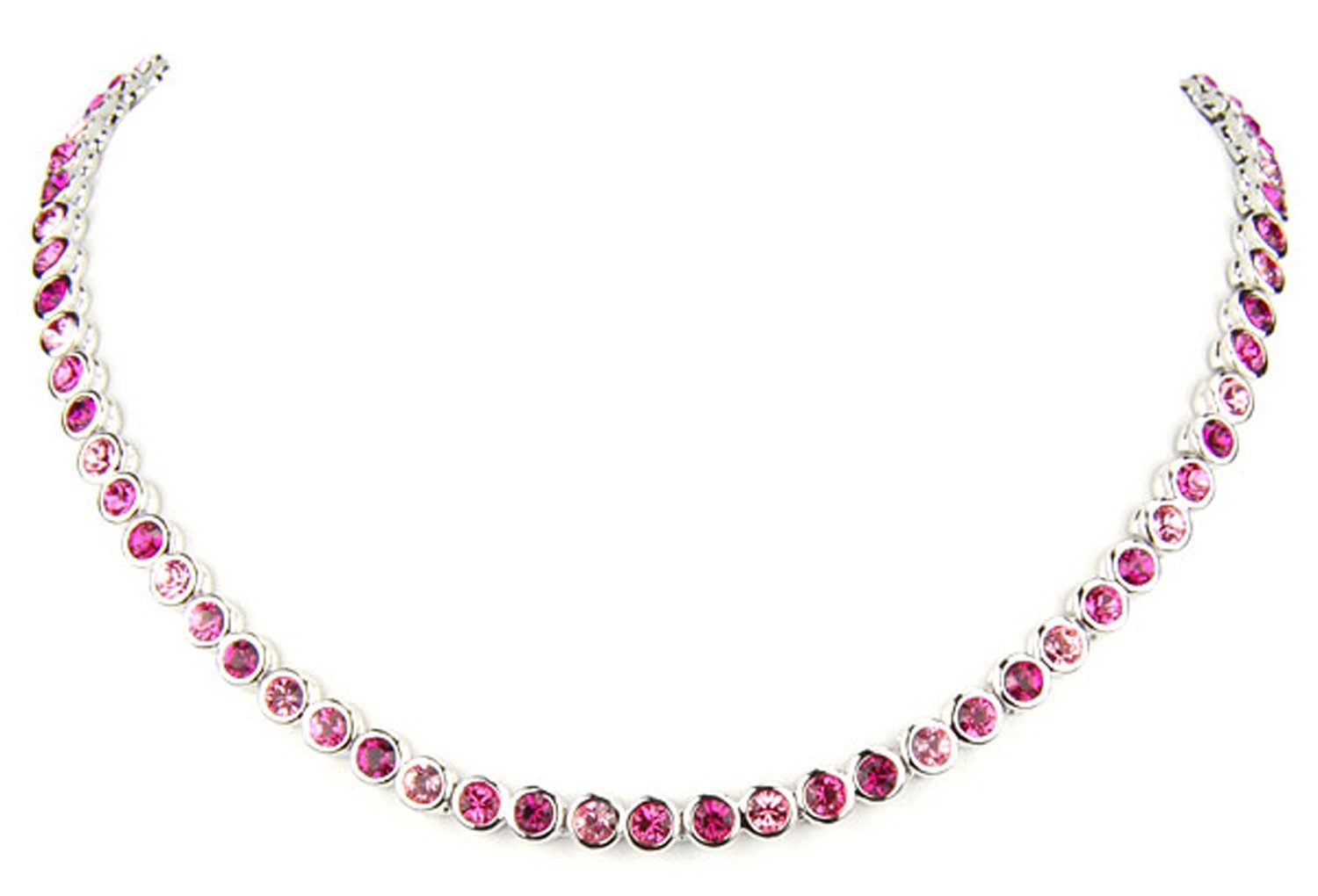 Sehr hochwertig verarbeitetes, zeitloses Tennis-Collier, mit Markenkristallen aus Österreich in der Farbzusammenstellung rose-light rose-fuchsia.