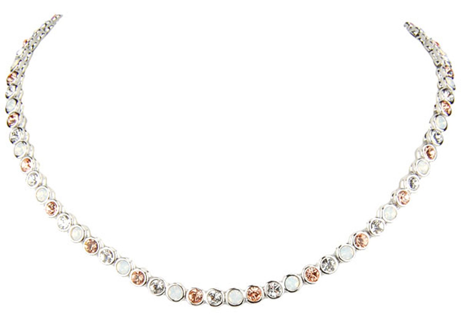 Sehr hochwertig verarbeitetes, zeitloses Tennis-Collier, mit Markenkristallen aus Österreich in der Farbzusammenstellung white opal-light peach-crystal.