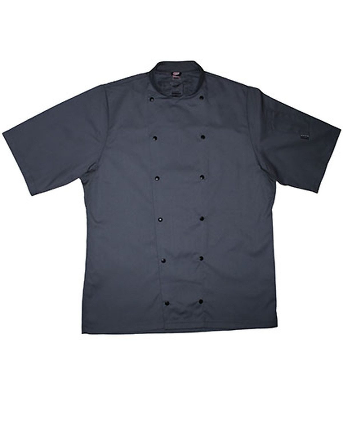 Kurzärmelige Unisex-Kochjacke mit Staycool-System, Belüftungseinsätze am Kragen und unter den Armen | Design mit abfallenden Schultern | Doppelte Stifttasche am linken Ärmel, Reißverschluss-Tasche rechts auf Hüfthöhe und Druckknöpfe