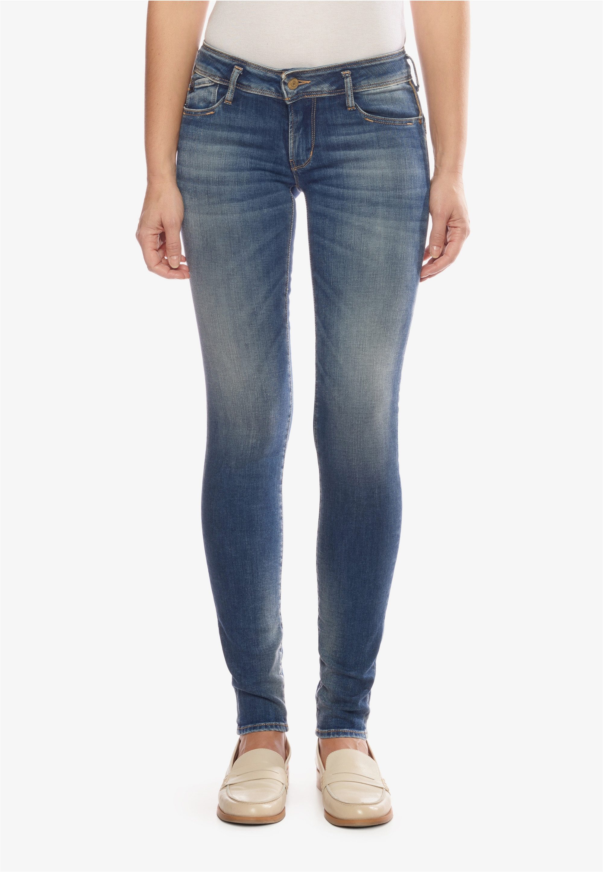 Jeans sind nach wie vor top-modern. Le temps des cerises präsentiert dieses Slim-Fit-Modell für Damen, das auf den Zug mit aufspringt und jedem Outfit das gewisse Etwas verleiht. Tragekomfort und modischer Look gehen hier Hand in Hand. Praktisch sind die Eingriff- und Gesäßtaschen sowie die Gürtelschlaufen am Bund. Geöffnet und geschlossen wird die Jeans klassisch mit einem Knopf.