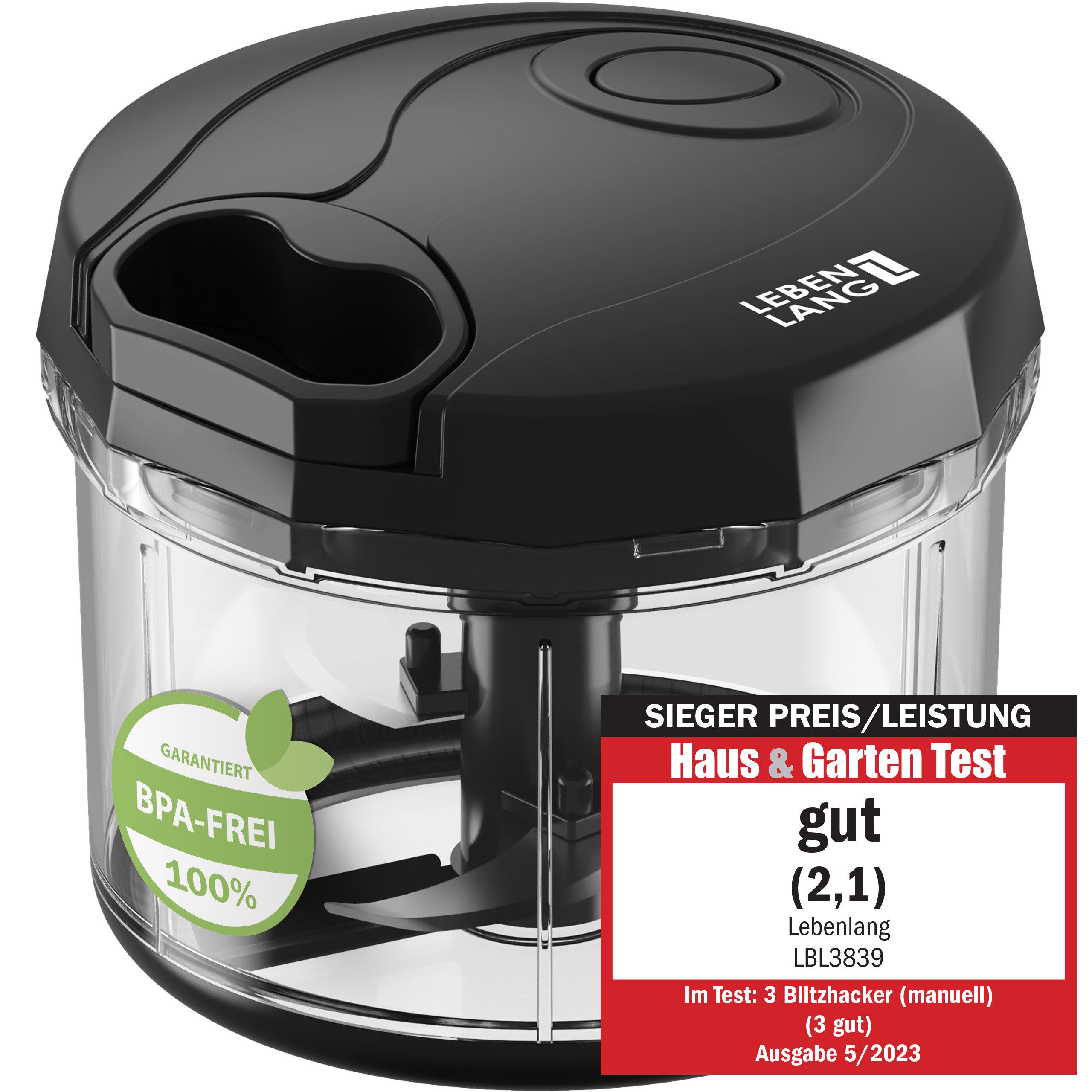 - Schnelles und sicheres Zerkleinern mit scharfen Edelstahlklingen des Gemüsezerkleinerers