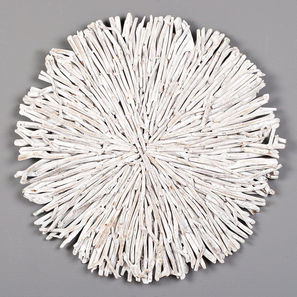 Wand-Deko-Objekt BULAT Farbe White Wash. Diese dekorative Wand-Objekt bereichert jeden Wohnbereich. Gefertigt aus Treibholz, verschönert dieses tolle, kreisförmige Wanddekoration jede triste Wand. Eine Wandhalterung ist an der Rückseite angebracht.