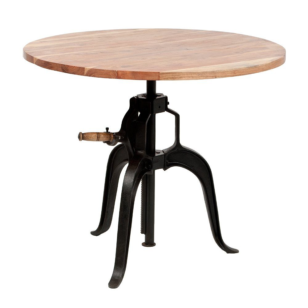 Innovativ, massiv und einzigartig. Der exklusive Esstisch ROUND ist ein absoluter Hingucker, egal ob im Wohnzimmer, Esszimmer oder in einer anderen Räumlichkeit. Mittels einer Kurbel, angebracht am schweren Gusseisen-Gestell, läßt sich auf Wunsch die massive Akazie-Tischplatte in der Höhe verstellen und dort fixieren. Die kernige Gesamtoptik, die einzigartige Maserung und warme Ausstrahlung dieses robusten Holzes wird Sie begeistern. Wohlfühl-Ambiente für Ihr Wohnzimmer oder Esszimmer.
