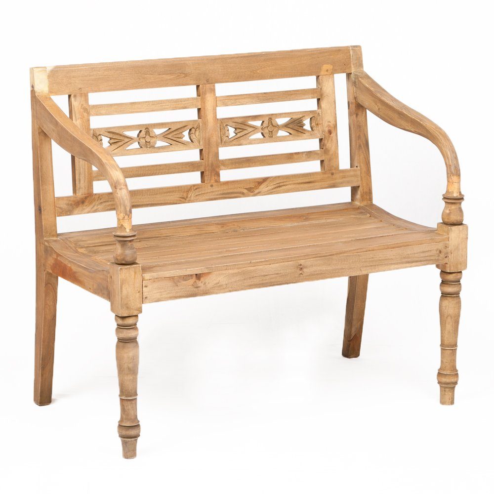 Diese Sitzbank CHRISTOS ist aus Mahagoni in Handarbeit gearbeitet. Die Rückenlehne / Streben sowieso die Beine sind in Handarbeit ausgearbeitet/verziert und unterstreichen den rustikalen Look dieser Sitzgelegenheit.