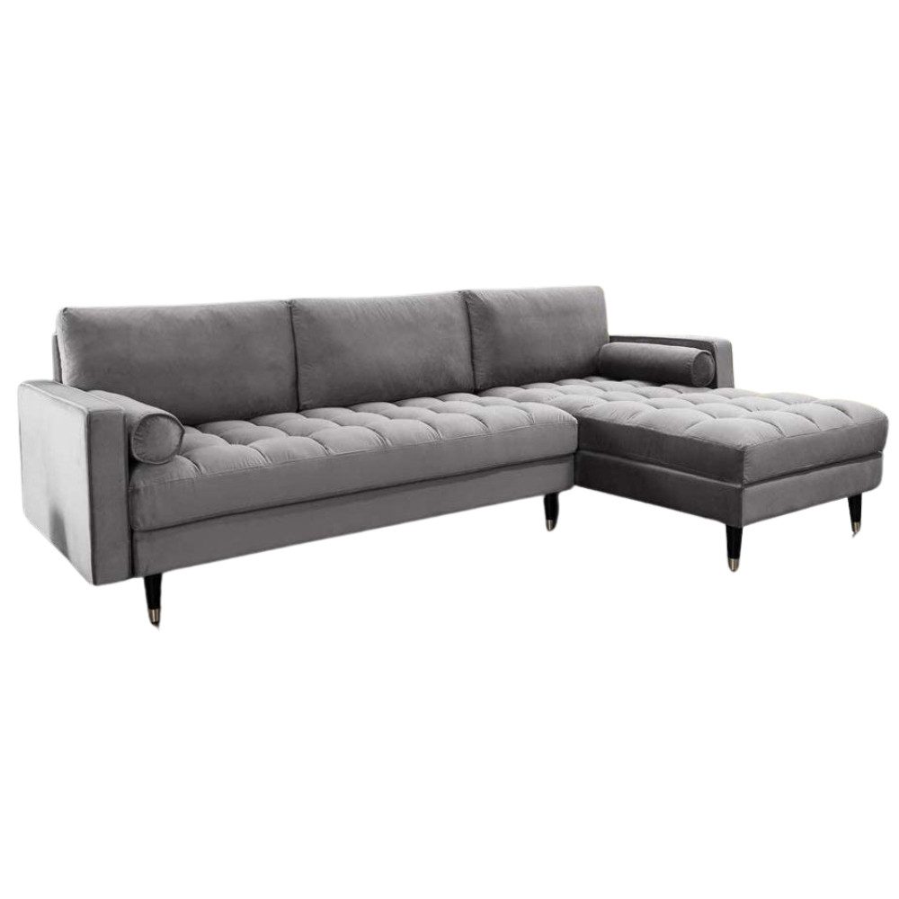 LebensWohnArt Sofa Ecksofa 260cm Ottomane beidseitig COMFORT grau Samt Federkern