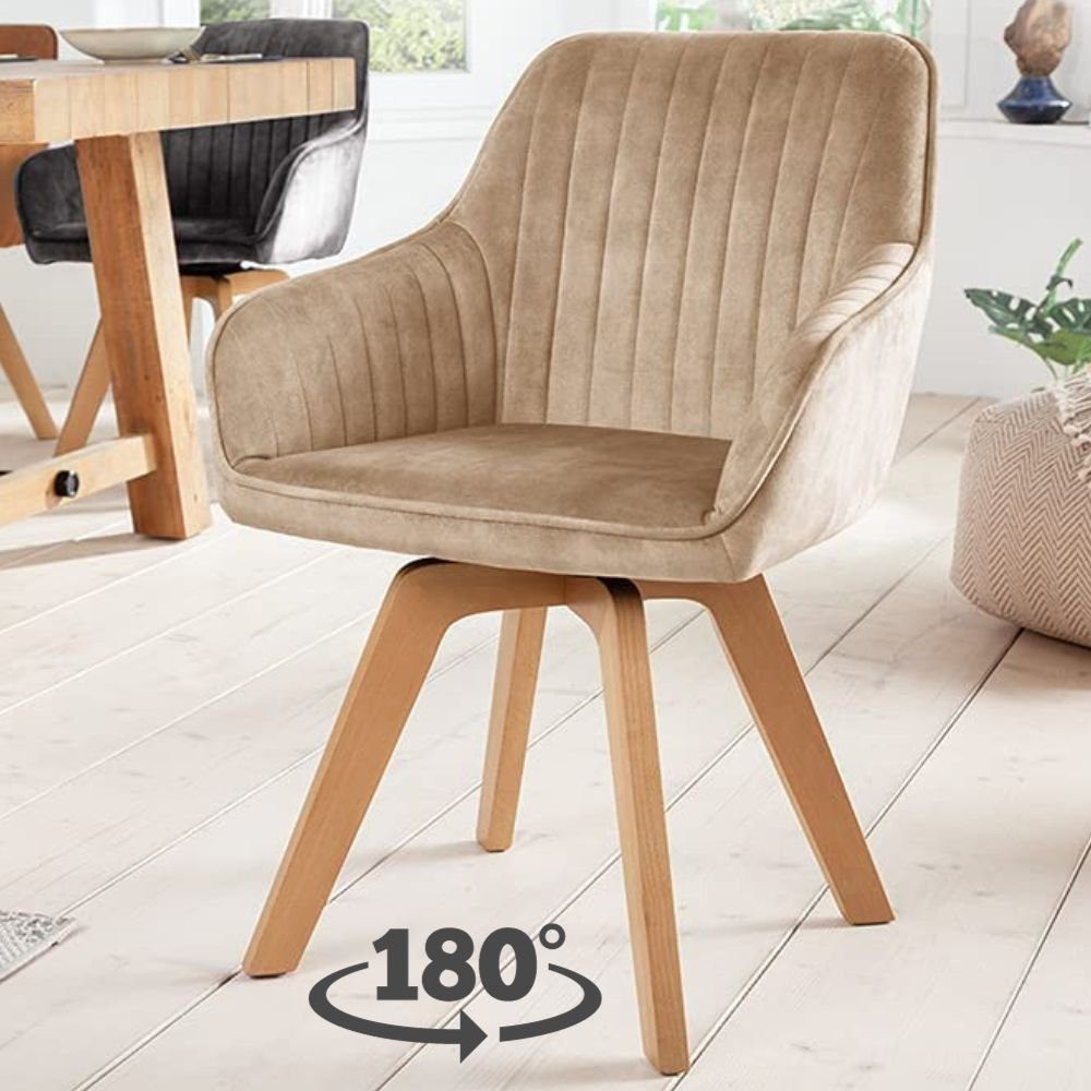 Unser bequem gepolsteter Armlehnstuhl NOVO lädt ein zum Verweilen. Und wenn dann doch mal aufgestanden werden muss, ist dass durch die um 180° drehbare Sitzschale ganz einfach möglich. Zeitloses Design und die besondere Haptik des hochwertigen Samtbezuges komplementieren diesen Stuhl zu einem tollen Möbelstück in deinem Essbereich.