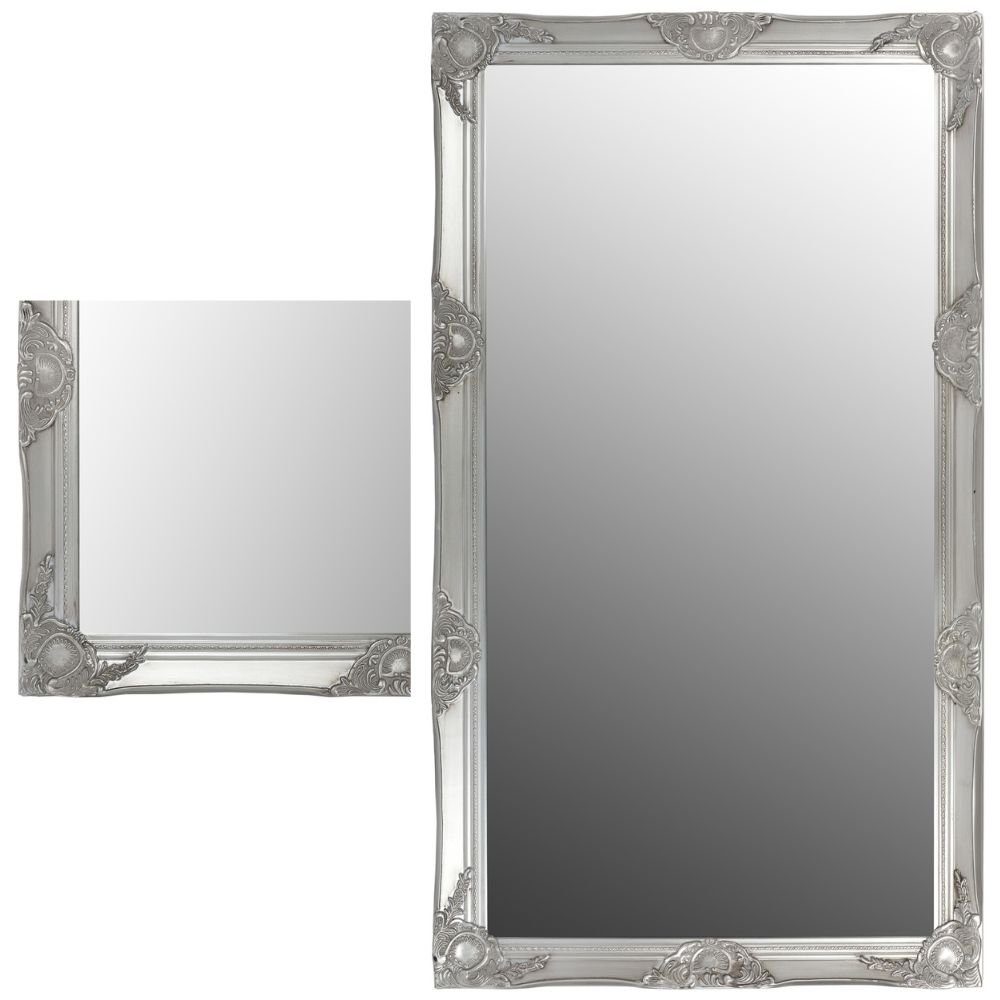 Stilvoll, elegant und vor allem zeitlos - Das beschreibt unser umfangreiches Spiegelsortiment, welches über 500 Spiegelvariationen umfasst. Die individuelle Verarbeitung der Materialien zeichnen die Qualität des LORD aus. Dazu gehören nicht nur der Holzrahmen und die wunderschönen Ornamente, Verzierungen und Kanten, sondern auch der hochwertige Facettenschliff, der einen Spiegel erst zum Glanzstück umwandelt. Der robuste Spiegelrahmen besteht aus massivem Holz, auf dem die Verzierungen aus einem Kunststoffgemisch angebracht und lackiert werden. Dieses Produkt wurde in Handarbeit individuell gefertigt und kann somit Unebenheiten und Narben in der Rahmenlackierung aufweisen. Die barocken Ornamente und der antik-silberne Farbton verleihen dem Spiegel seinen ganz besonderen, nostalgischen Charme. Pure Eleganz strahlt dieser Spiegel aus - ganz gleich in welchem Wohnbereich Sie ihn nutzen.
