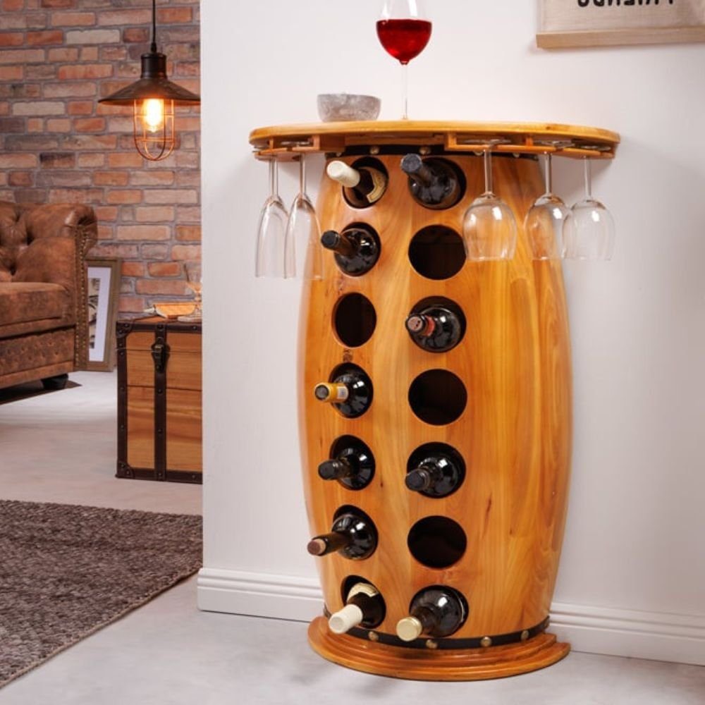 Uriger geht es doch kaum noch ..... Das einem echten Weinfass nachempfundene Flaschenregal ist ein richtiger Hingucker. Mit Liebe zum Detail wurde dieser Artikel entworfen, um Dein Zuhause noch gemütlicher zu machen. Die Ziernieten und das Design der Holzoberfläche wirken wunderbar authentisch und die natürliche Maserung macht jedes Regal zum Unikat.