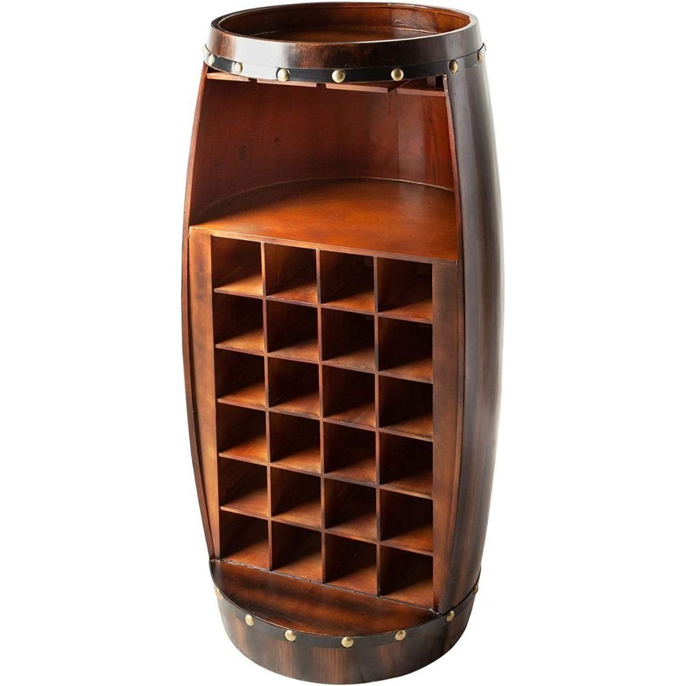 Uriger geht es doch kaum noch ..... Das einem echten Weinfass nachempfundene Flaschenregal ist ein richtiger Hingucker. Mit Liebe zum Detail wurde dieser Artikel entworfen, um Dein Zuhause noch gemütlicher zu machen. Die Ziernieten und das Design der Holzoberfläche wirken wunderbar authentisch und die natürliche Maserung macht jedes Regal zum Unikat.