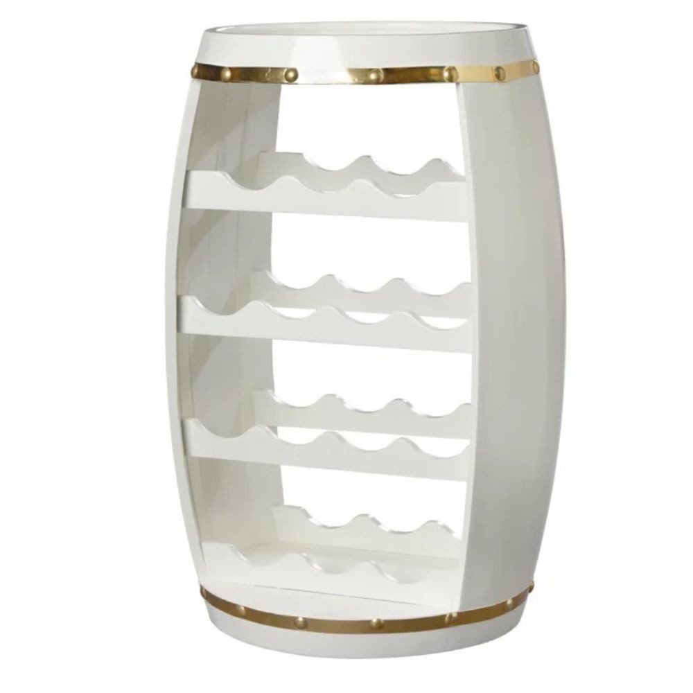 Dann ist das Design-Weinfass BOTELLA genau das Richtige für dich! Dieses außergewöhnliche Möbelstück ist aus massivem Pinienholz gefertigt und in einem eleganten Weiß mit goldenen Akzenten lackiert. Das Design-Weinfass BOTELLA bietet Platz für bis zu 14 Flaschen, die du in den runden Aussparungen an der Vorderseite einlegen kannst. So hast du deine Lieblingsweine immer griffbereit und präsentierst sie zugleich auf eine dekorative Art und Weise.