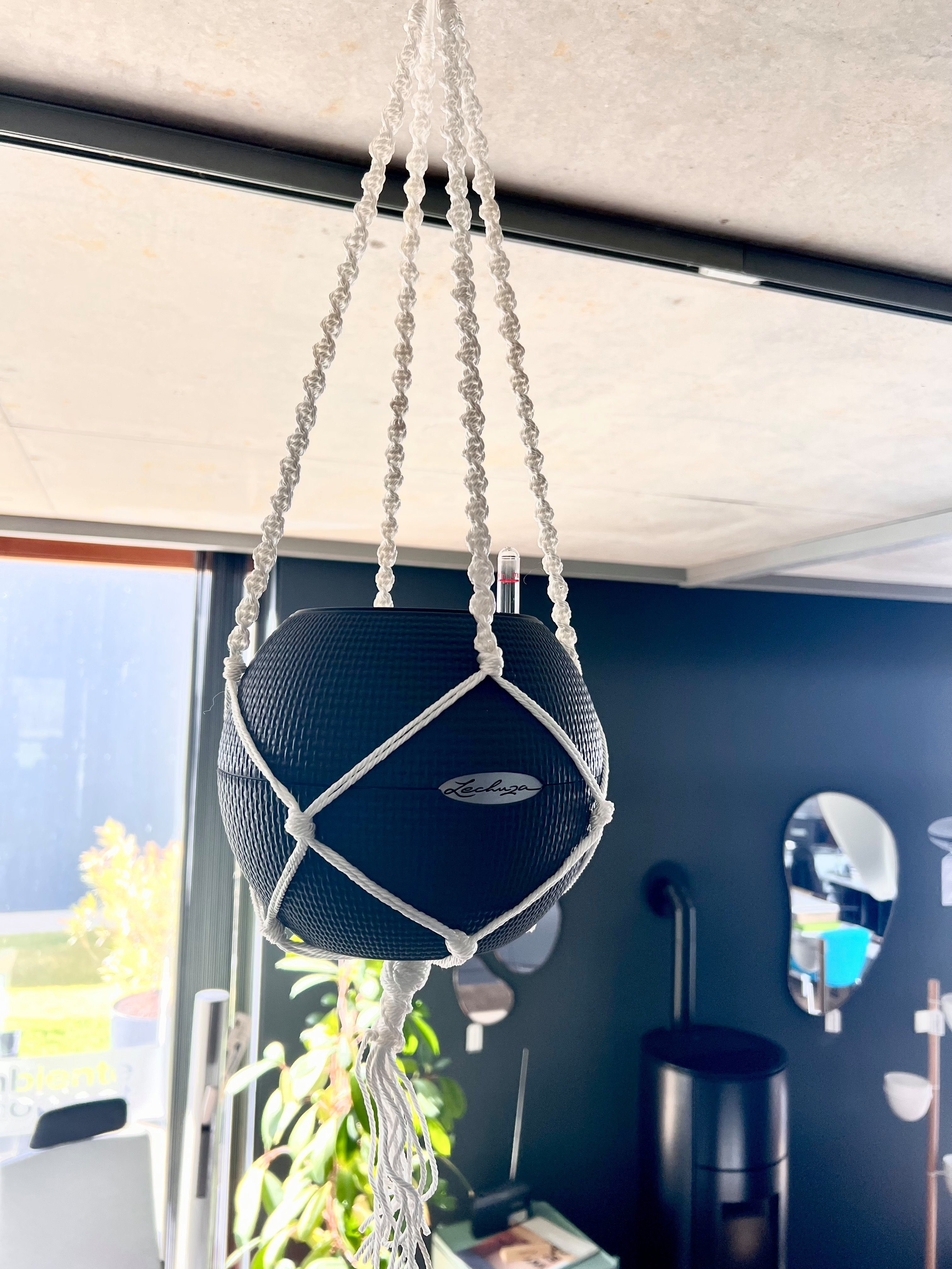Die geknüpfte Makramee-Aufhängung verwandelt das PURO Color 20 Pflanzgefäß in eine angesagte