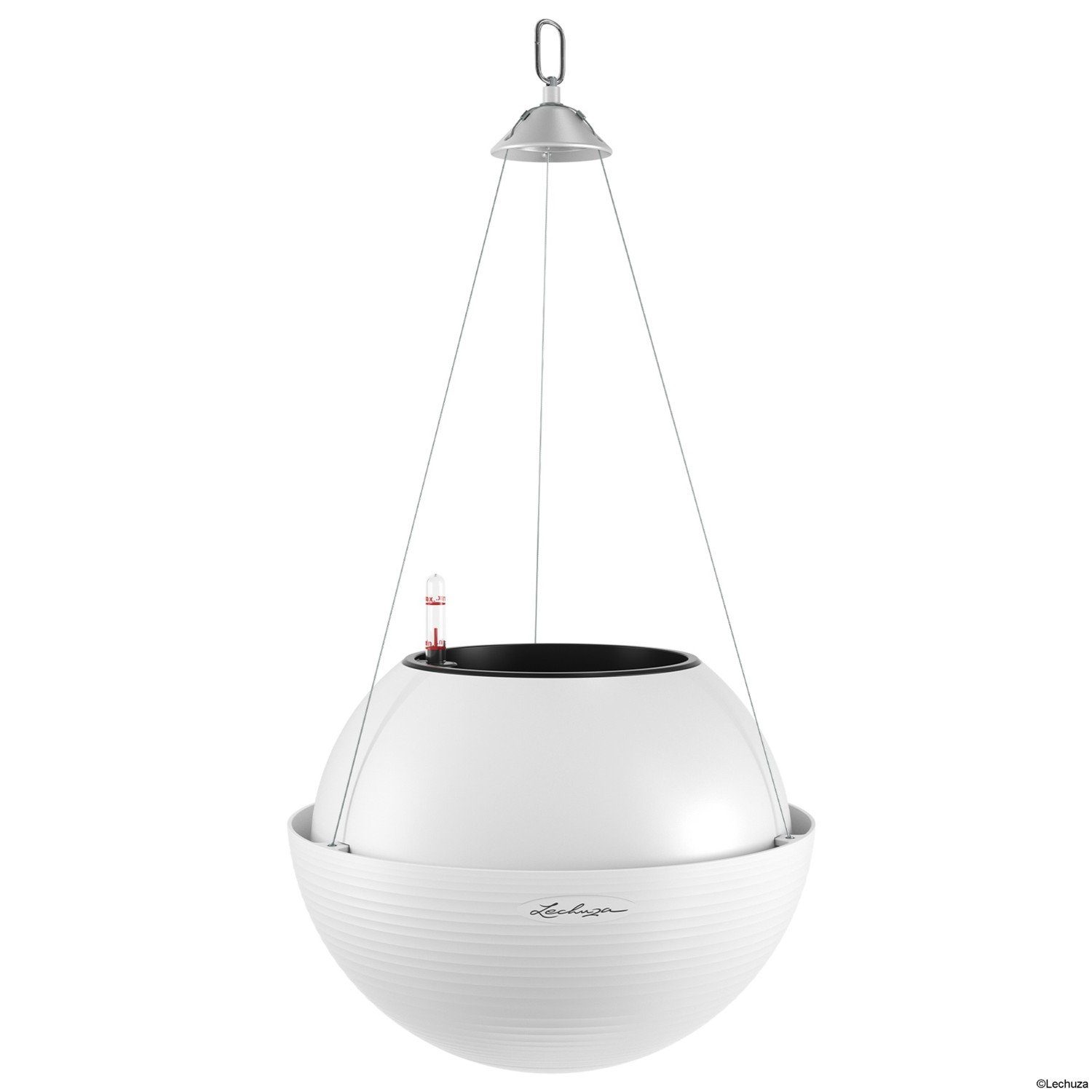 Das Pflanzgefäß mit integriertem Original LECHUZA-Bewässerungssystem besteht aus zwei Halbkugeln, die neu miteinander kombiniert einen umlaufenden Gießbereich ergeben.