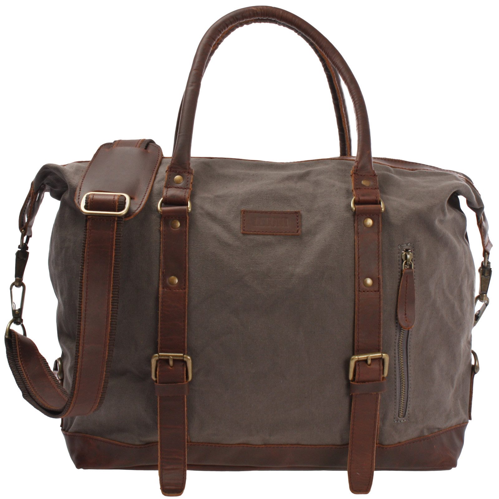 Gefertigt aus strapazierfähigem Canvas und hochwertigem Rindsleder, vereint die Tasche Leichtigkeit mit Stabilität. Das feste Gewebe sorgt für Widerstandskraft, während das Leder mit seiner glatten Oberfläche und feinen Struktur einen edlen Akzent setzt. Dieses Zusammenspiel macht den Weekender zu einem langlebigen Begleiter, der auch nach Jahren nichts von seinem Charme verliert.